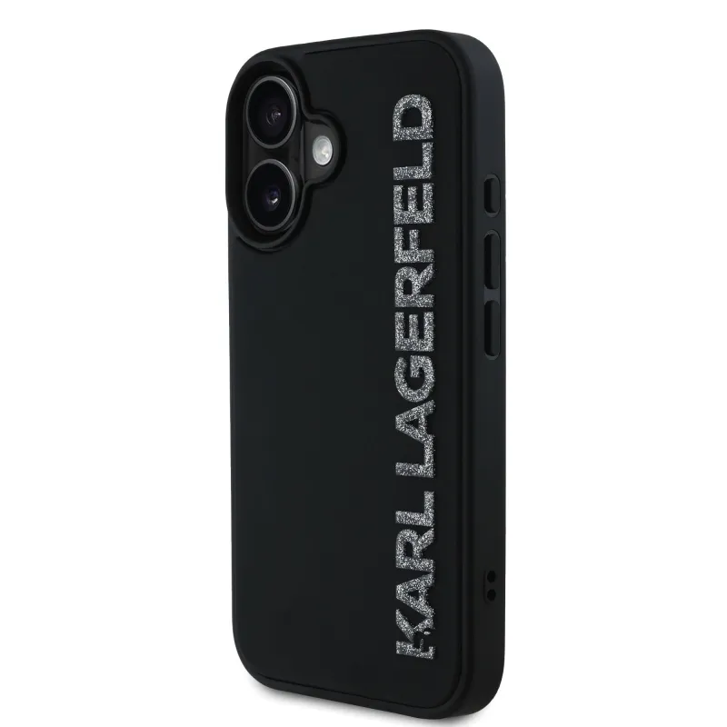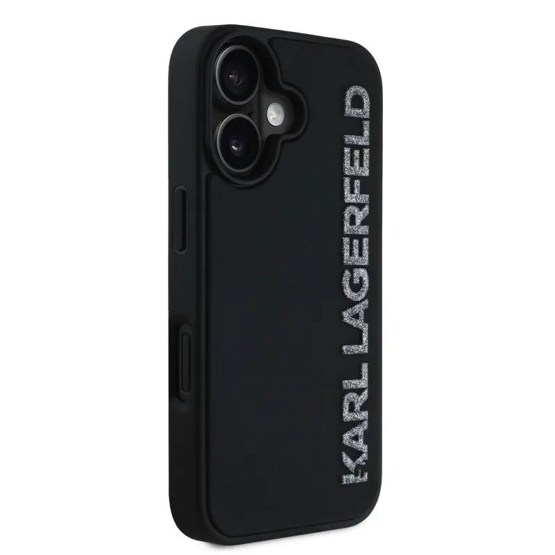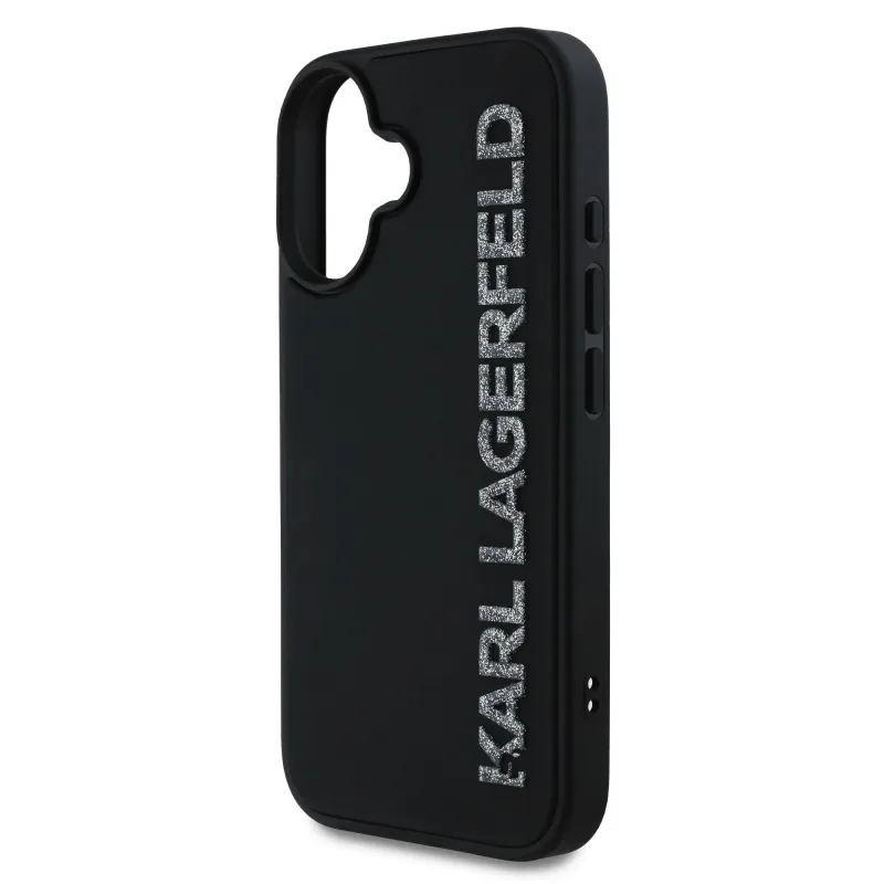 Karl Lagerfeld 3D gumiból készült csillogó logós hátlap iPhone 16-hoz Fekete