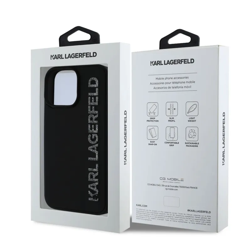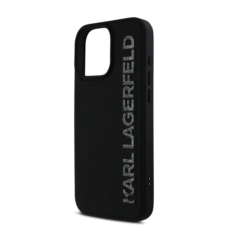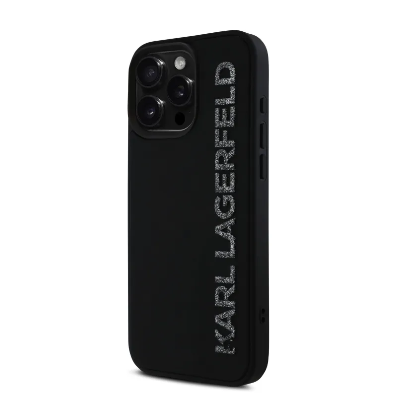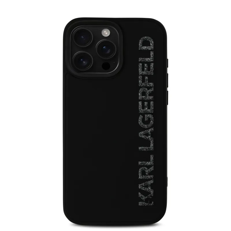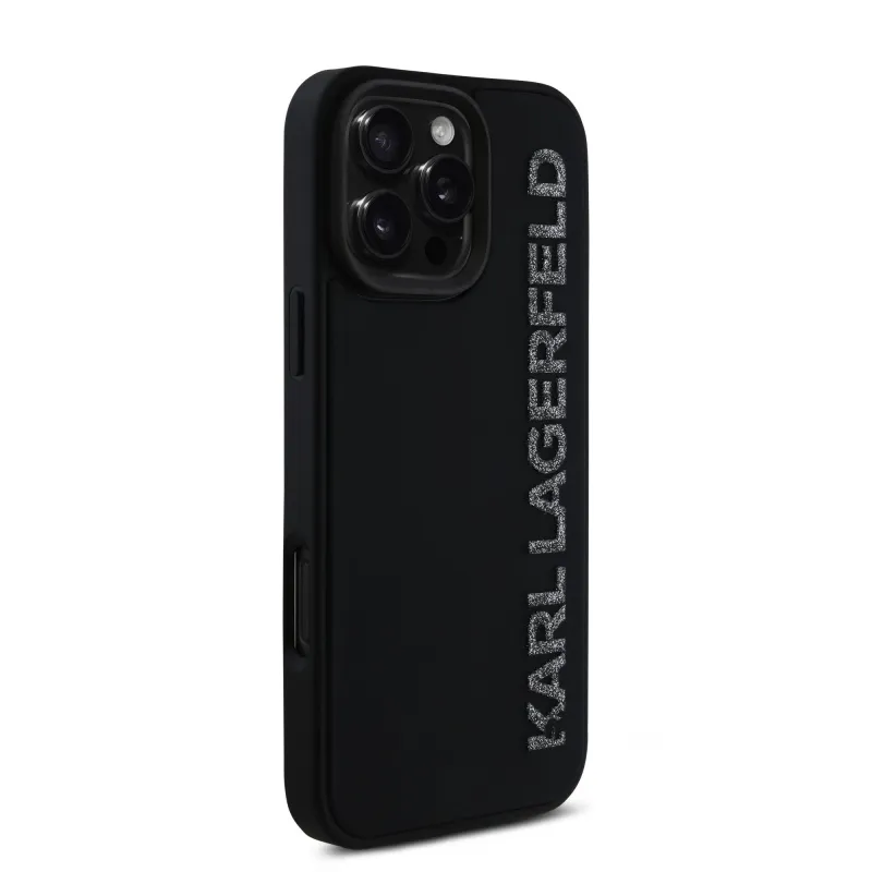 Karl Lagerfeld 3D gumiból készült, csillogó logós hátlap iPhone 16 Pro Max készülékhez Fekete