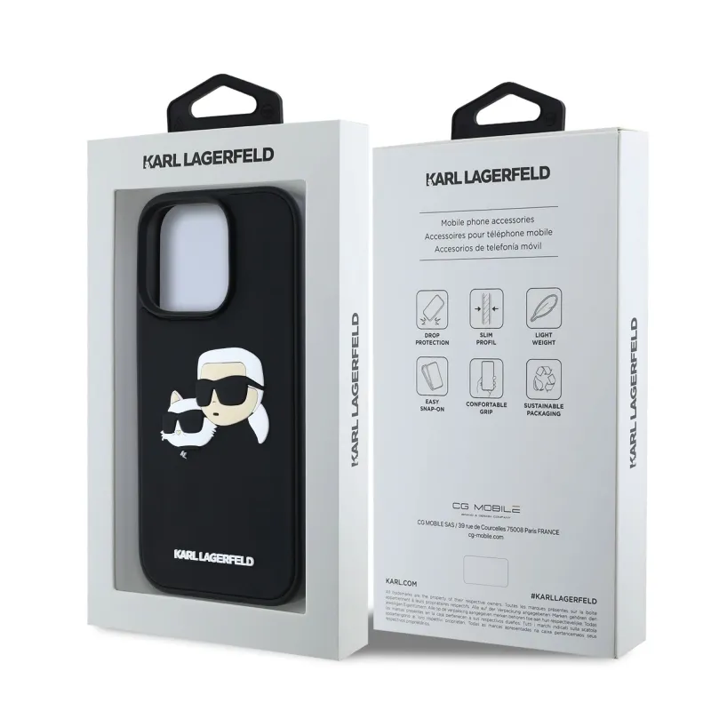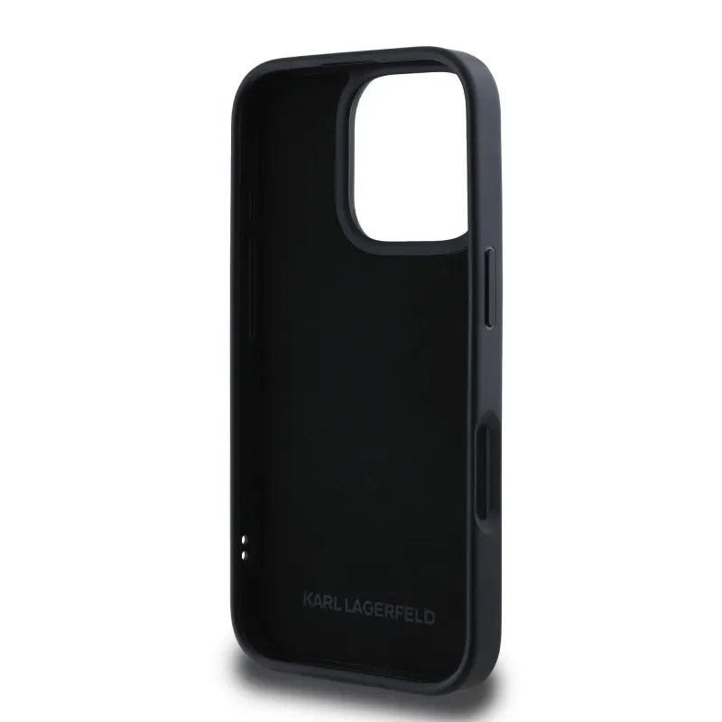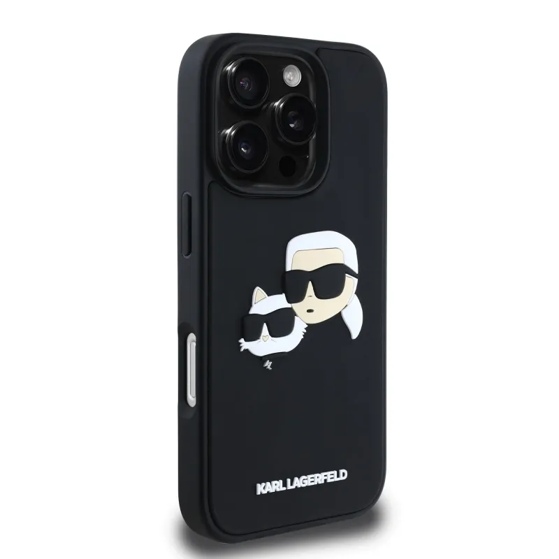 Karl Lagerfeld 3D gumiból készült duplafejű hátlap az iPhone 16 Pro készülékhez Fekete
