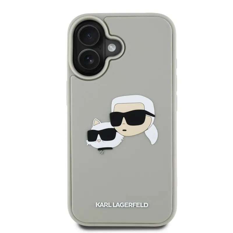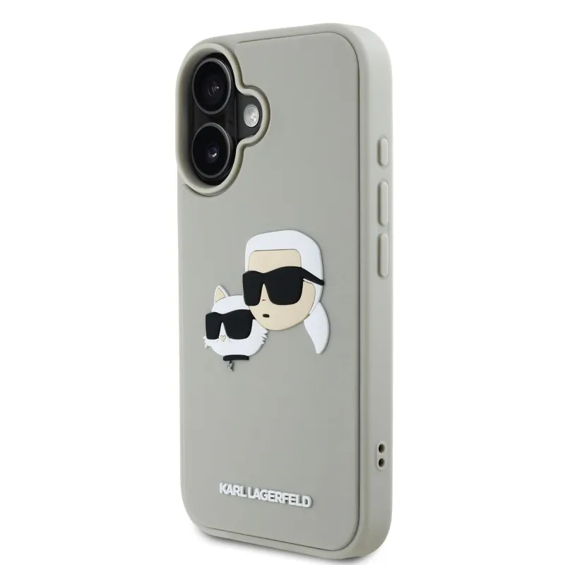Karl Lagerfeld 3D gumiból készült duplafejű hátlap iPhone 16 bézs színűre