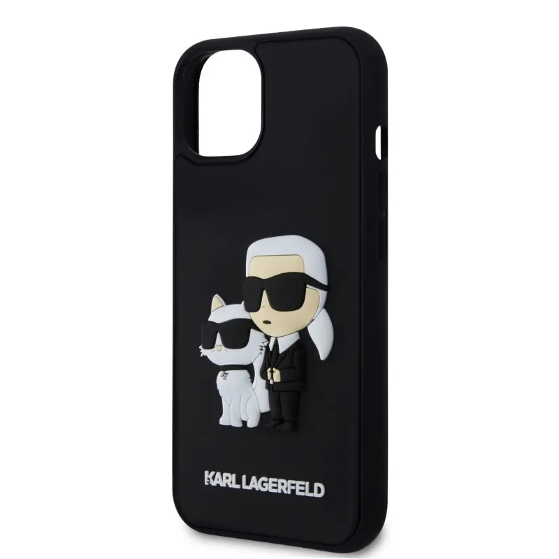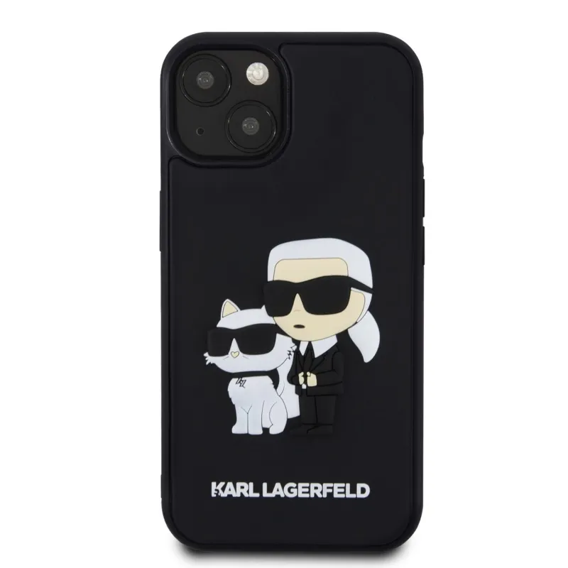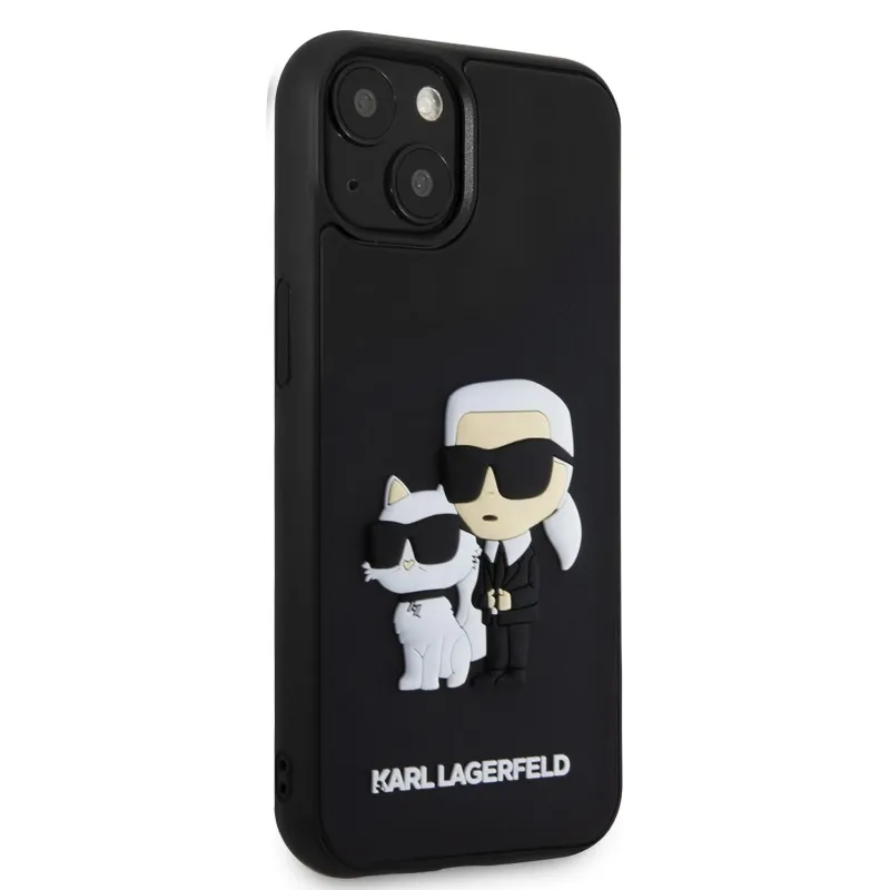 Karl Lagerfeld 3D gumiból készült Karl és Choupette hátlap iPhone 13 készülékhez Fekete