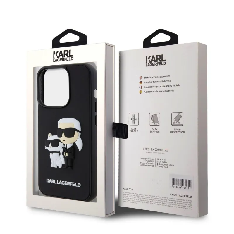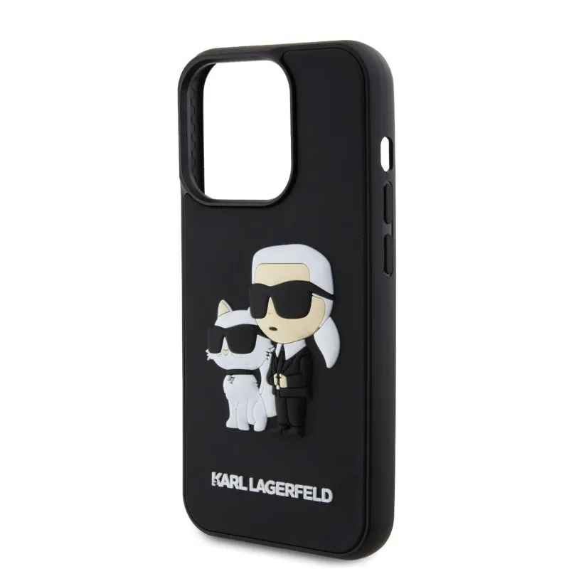 Karl Lagerfeld 3D gumiból készült Karl és Choupette hátlap iPhone 13 Pro készülékhez Fekete