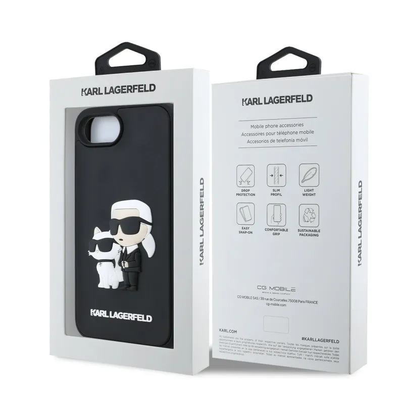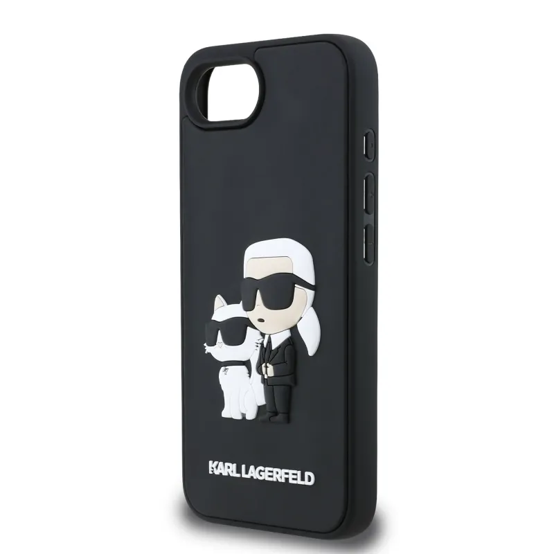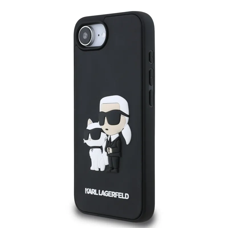 Karl Lagerfeld 3D gumiból készült Karl és Choupette hátlap iPhone 16e készülékhez Fekete