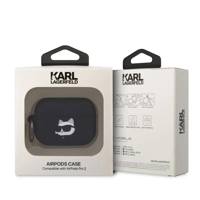 Karl Lagerfeld 3D Logo NFT Choupette Head szilikon tok az Airpods Pro 2 készülékhez Fekete