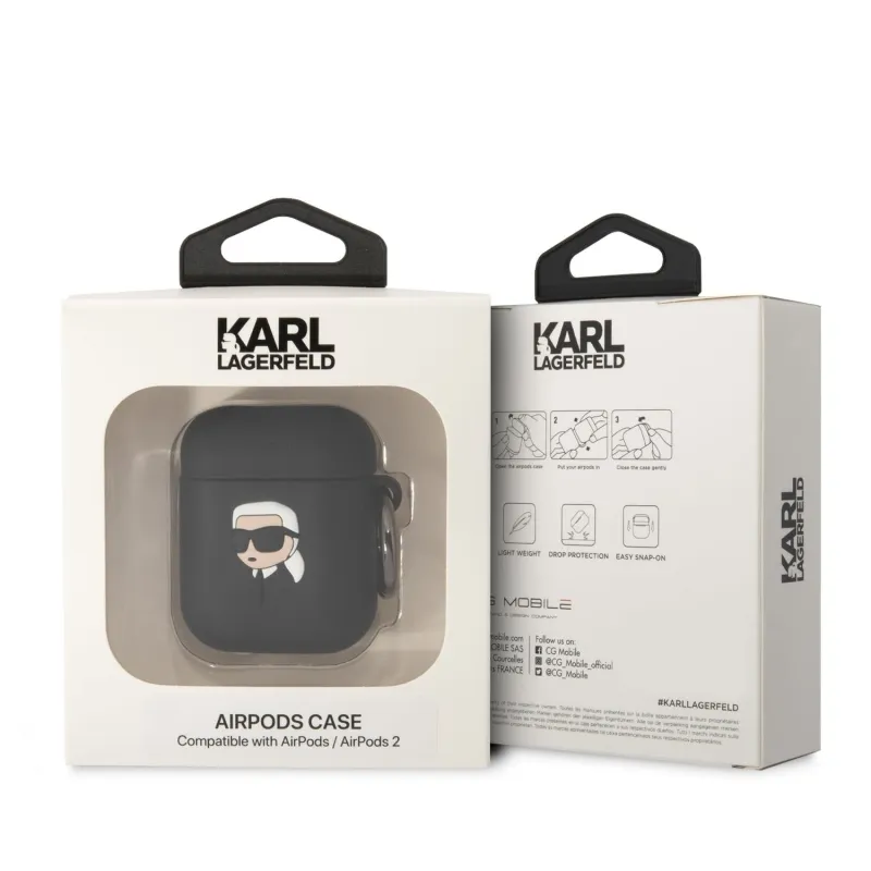 Karl Lagerfeld 3D Logo NFT Karl Head szilikon tok Airpods 1/2 Fekete