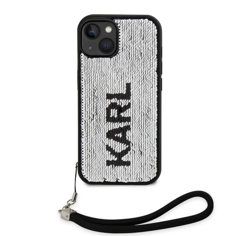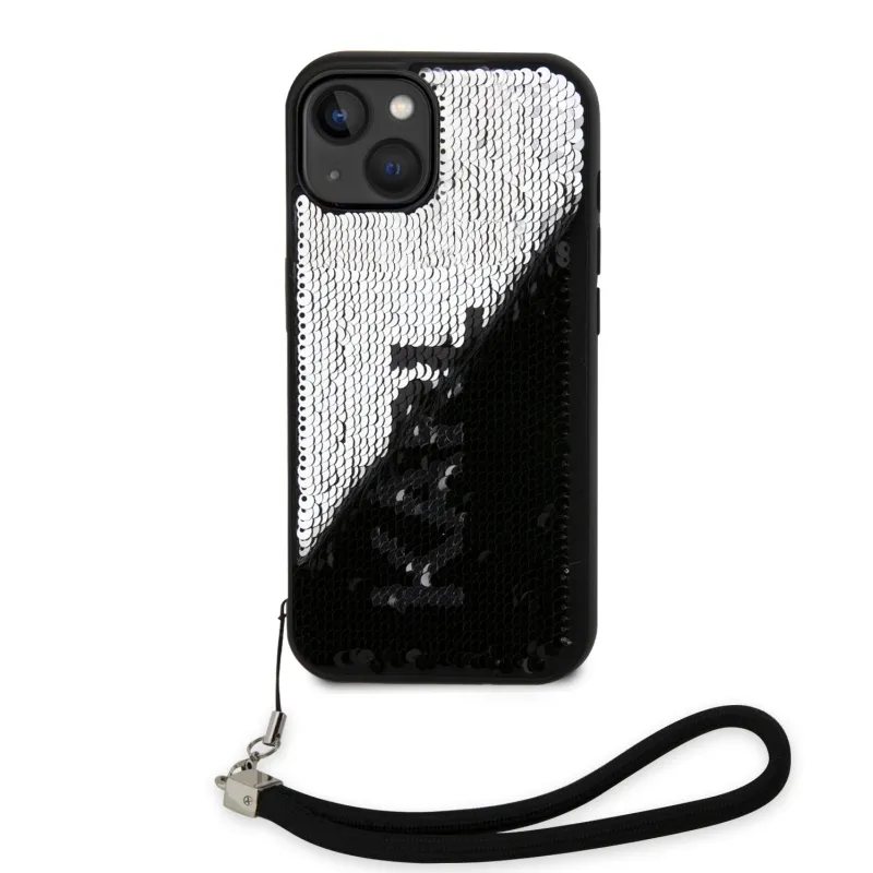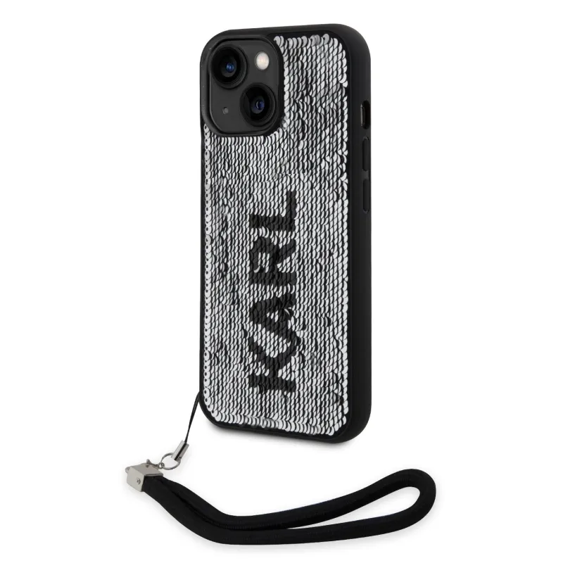 Karl Lagerfeld flitterek Fordítható hátlap iPhone 14 fekete/ezüst színű iPhone 14 készülékhez