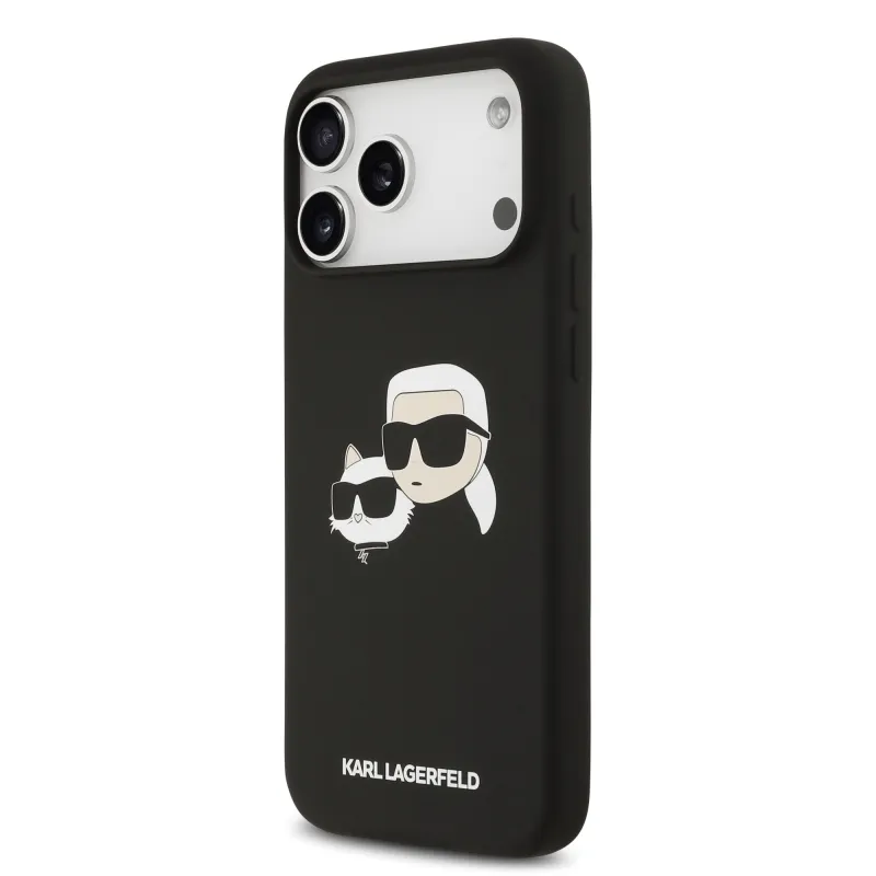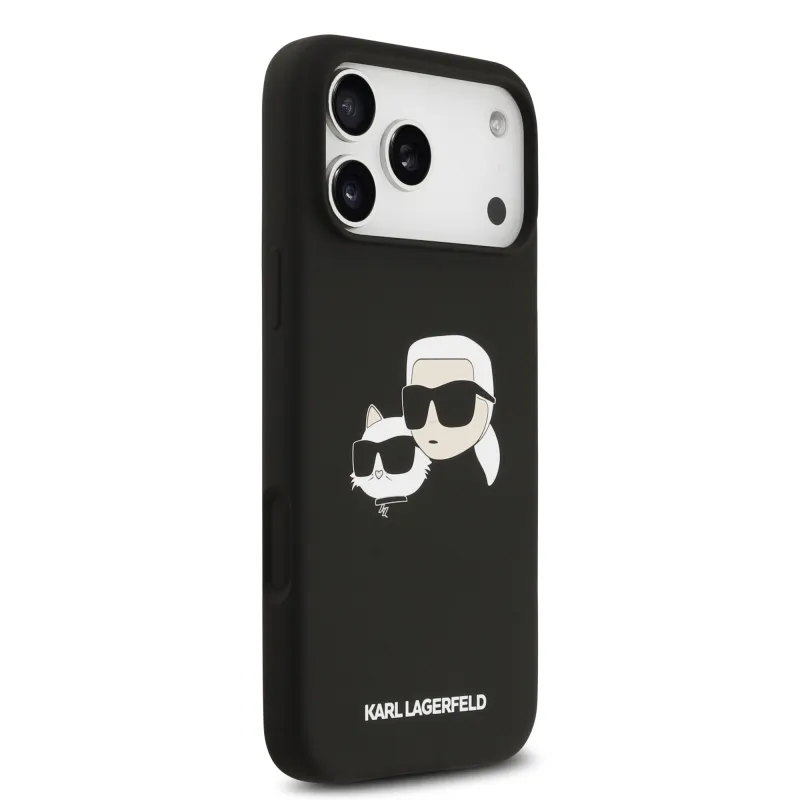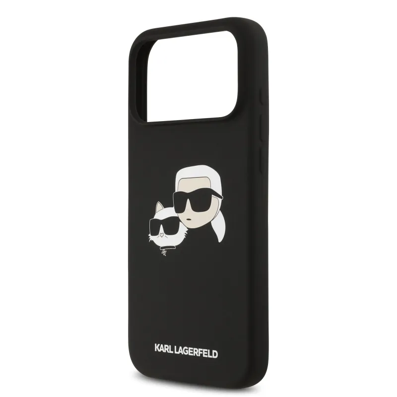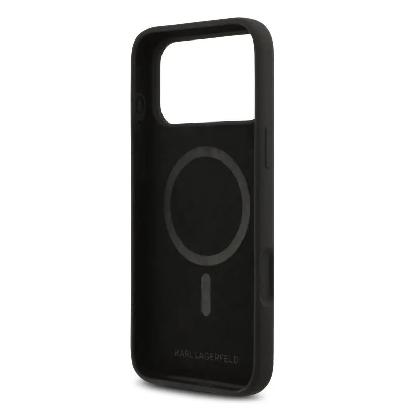 Karl Lagerfeld folyékony szilikon dupla fejű MagSafe hátlap iPhone 17 Pro Max fekete színűre