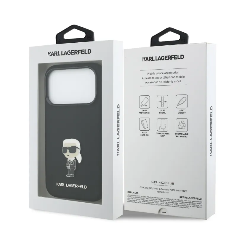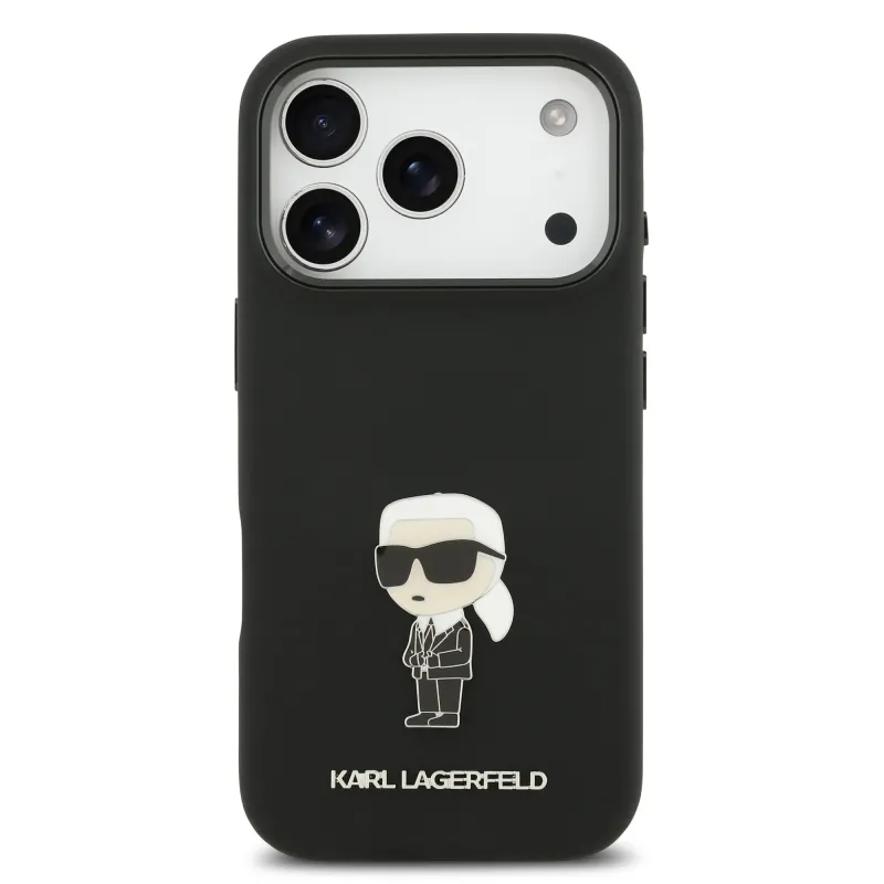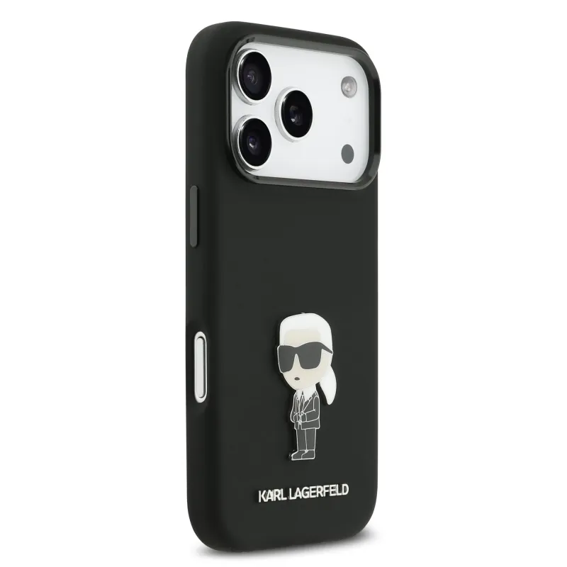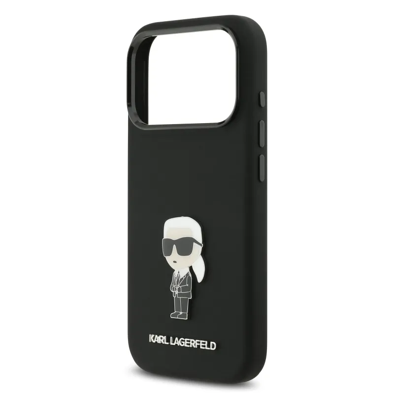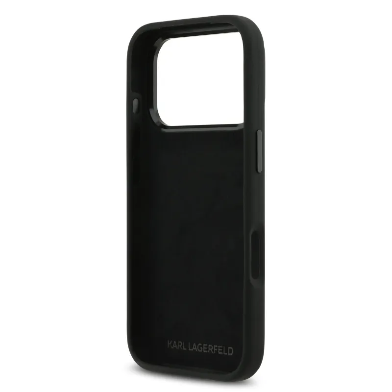 Karl Lagerfeld Folyékony szilikon fém Ikonik hátlap iPhone 17 Pro Fekete