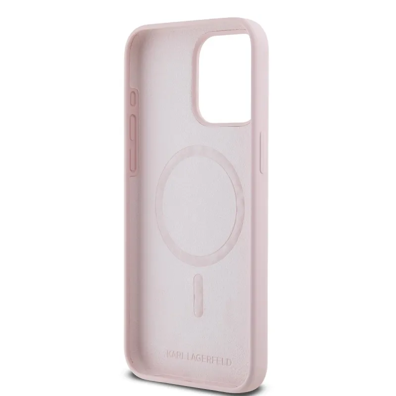 Karl Lagerfeld Folyékony szilikon Karl és Choupette Magsafe hátlap iPhone 15 Pro rózsaszínű készülékhez