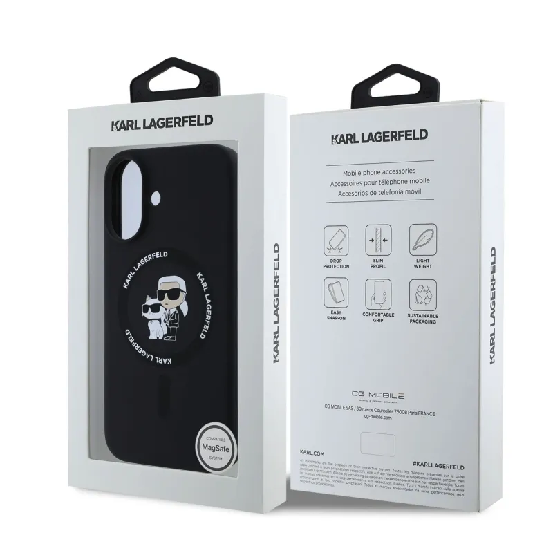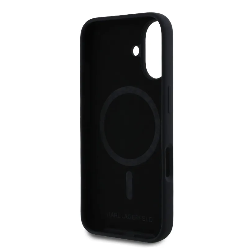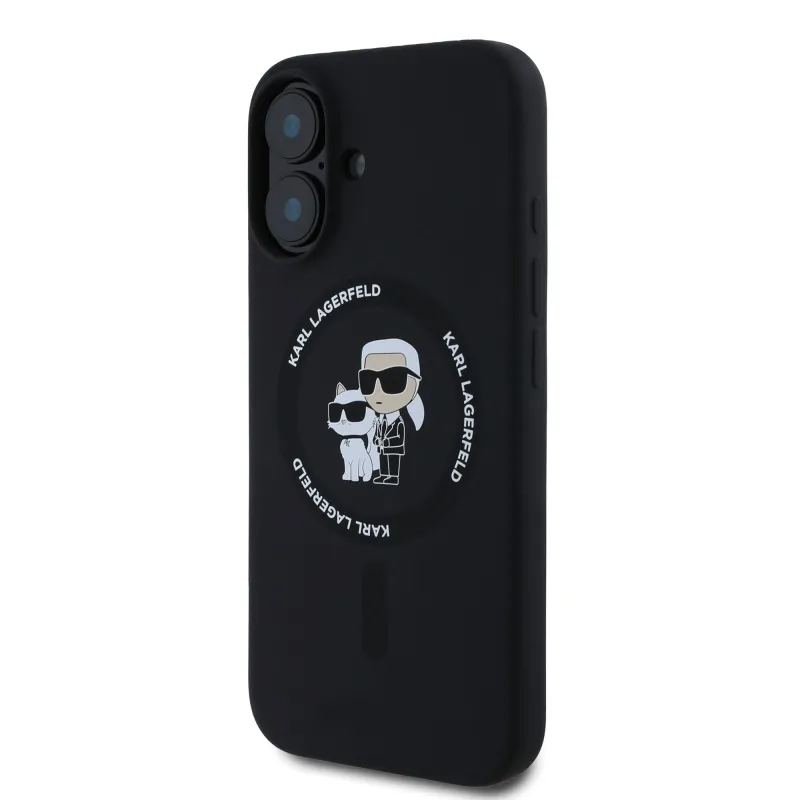 Karl Lagerfeld Folyékony szilikon Karl és Choupette MagSafe hátlap iPhone 16-hoz Fekete