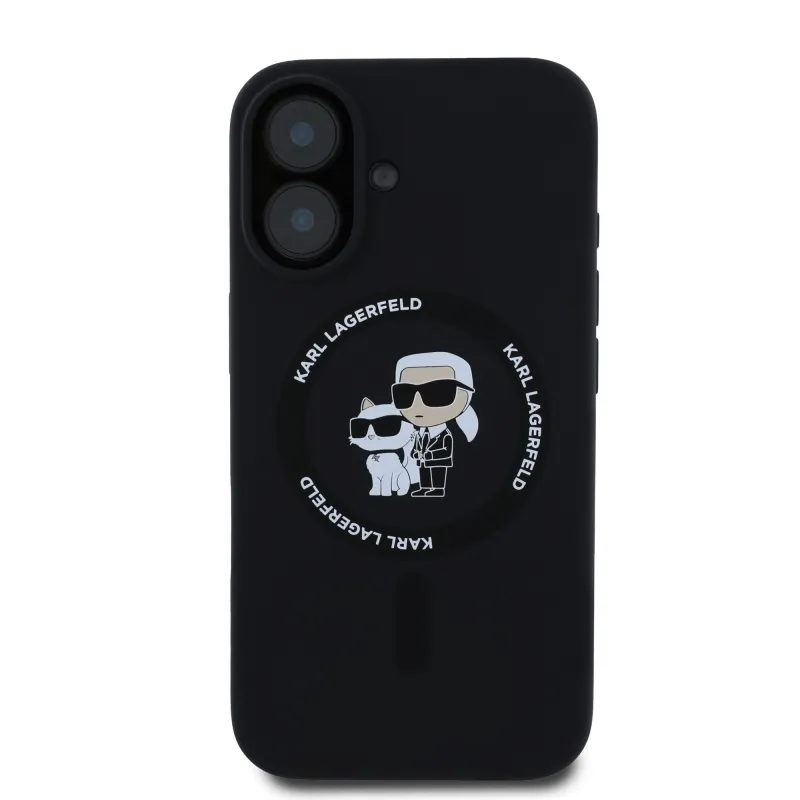 Karl Lagerfeld Folyékony szilikon Karl és Choupette MagSafe hátlap iPhone 16 Plus-hoz Fekete