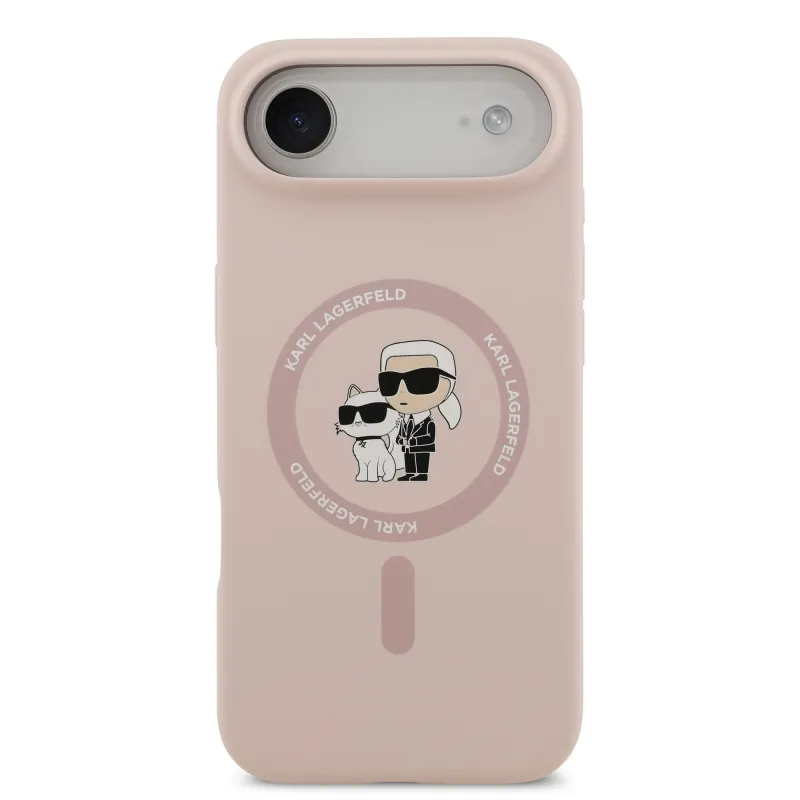 Karl Lagerfeld Folyékony szilikon Karl és Choupette MagSafe hátlap iPhone 17 Air rózsaszínű borítóhoz