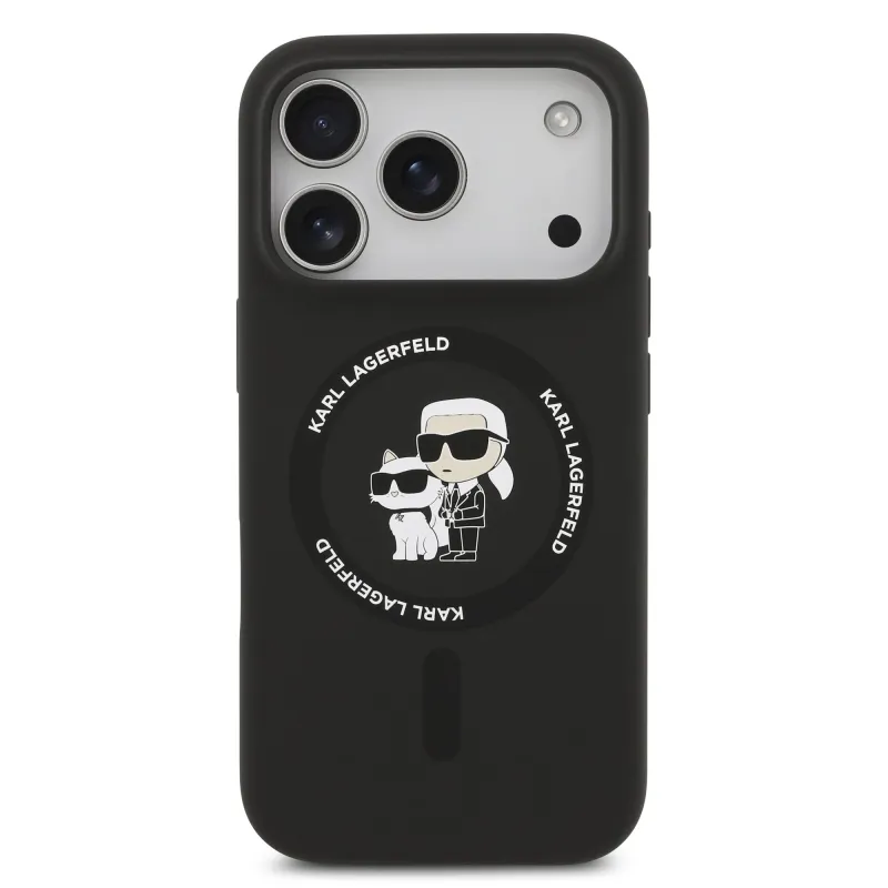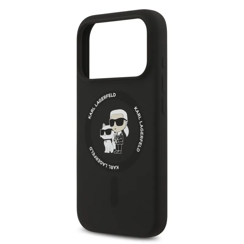Karl Lagerfeld Folyékony szilikon Karl és Choupette MagSafe hátlap iPhone 17 Pro-hoz Fekete