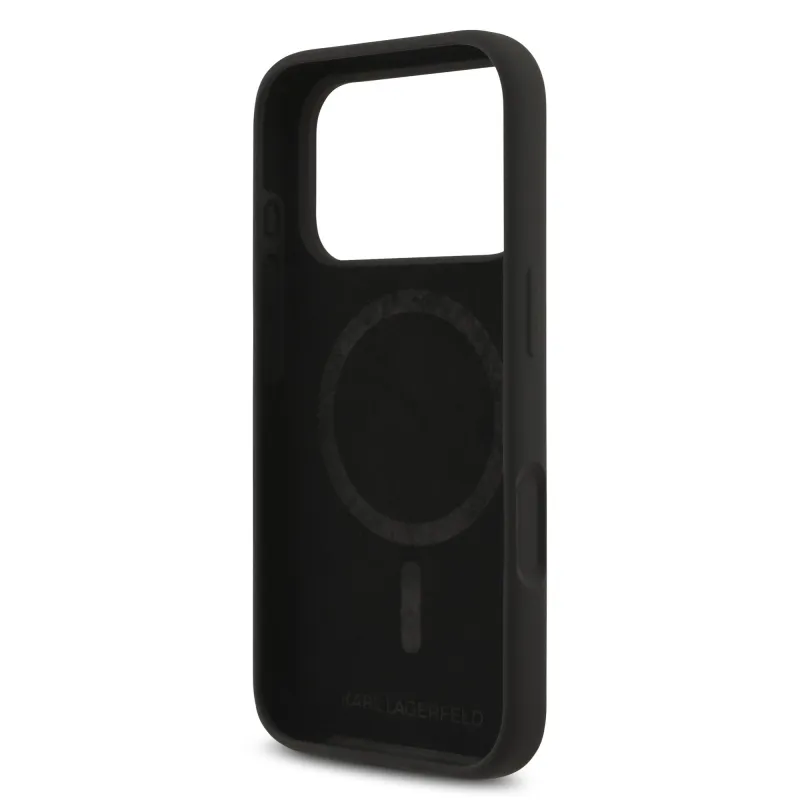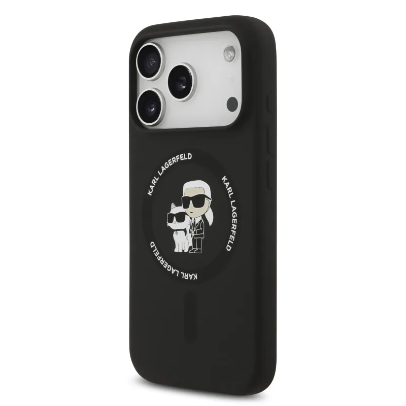 Karl Lagerfeld folyékony szilikon Karl and Choupette MagSafe hátlap iPhone 17 Pro Maxhoz, fekete