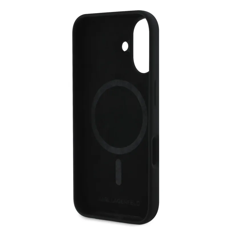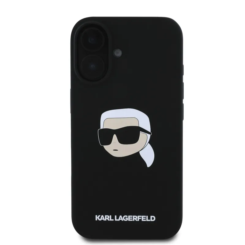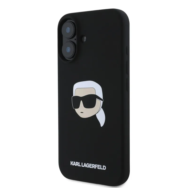 Karl Lagerfeld folyékony szilikon Karl Head MagSafe hátlap iPhone 16-hoz Fekete