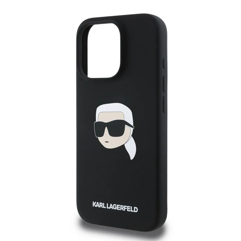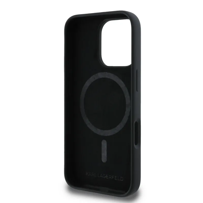 Karl Lagerfeld folyékony szilikon Karl Head MagSafe hátlap iPhone 16 Pro fekete színűre