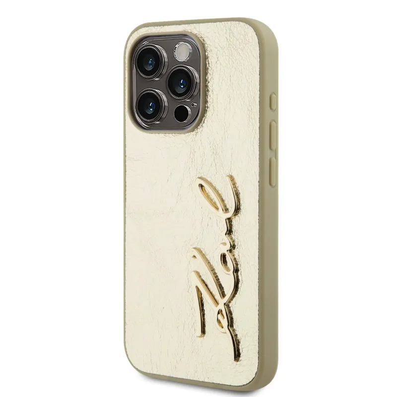 Karl Lagerfeld gyűrött PU aláírás logós hátlap iPhone 15 Pro Max arany színűre