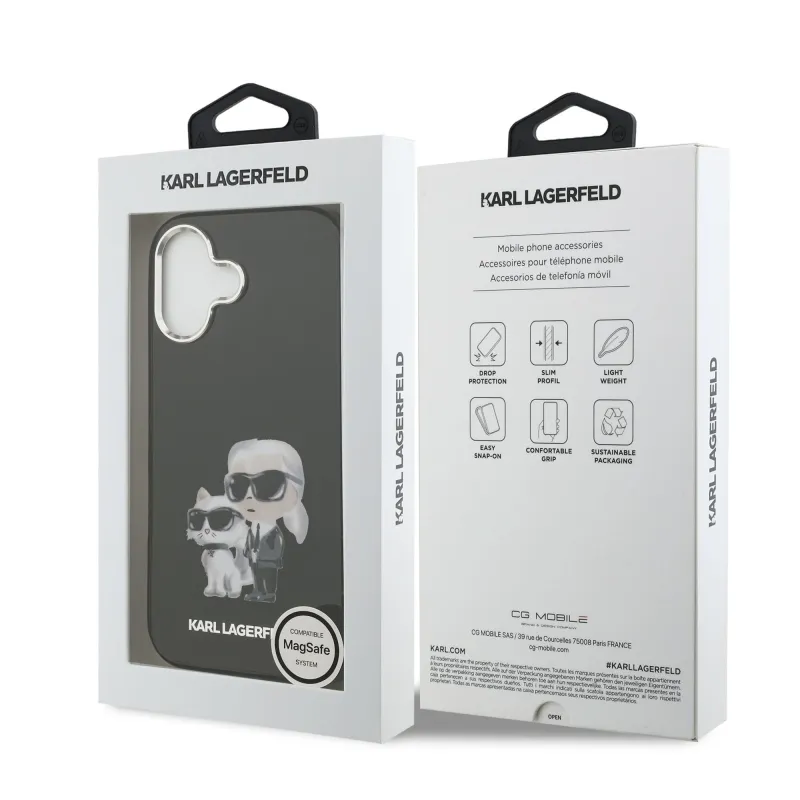 Karl Lagerfeld IML Aquarelle Karl és Choupette hátlapi borító iPhone 17 készülékhez Fekete