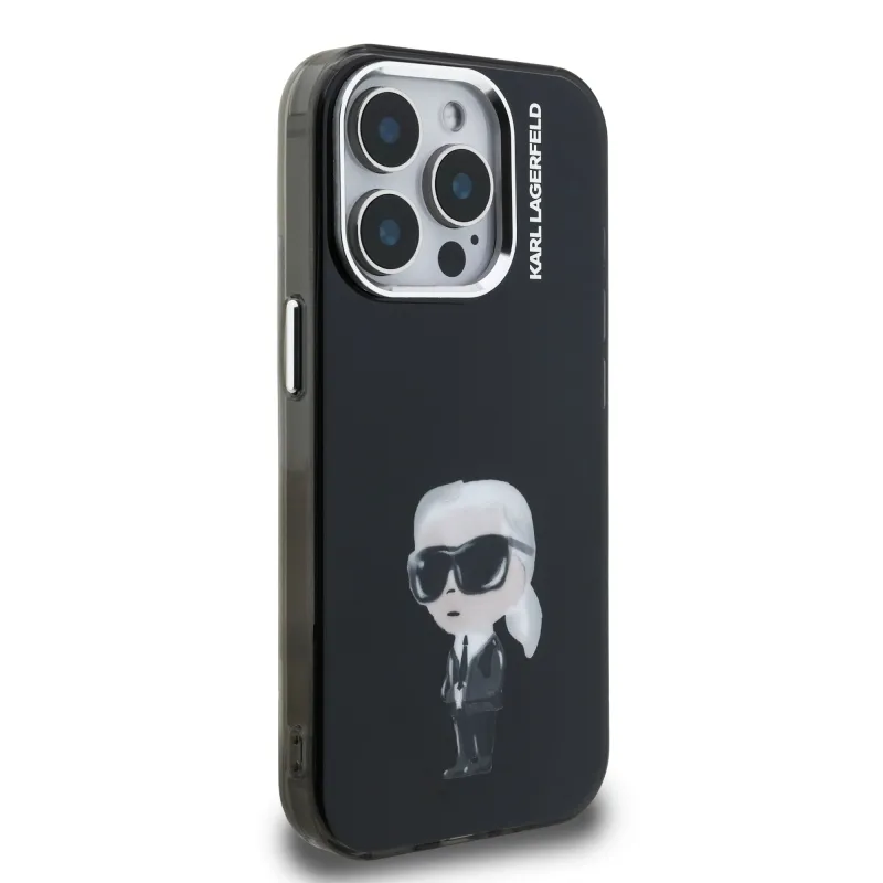 Karl Lagerfeld IML Aquarelle Karl hátlapi borító iPhone 15 Pro készülékhez Fekete