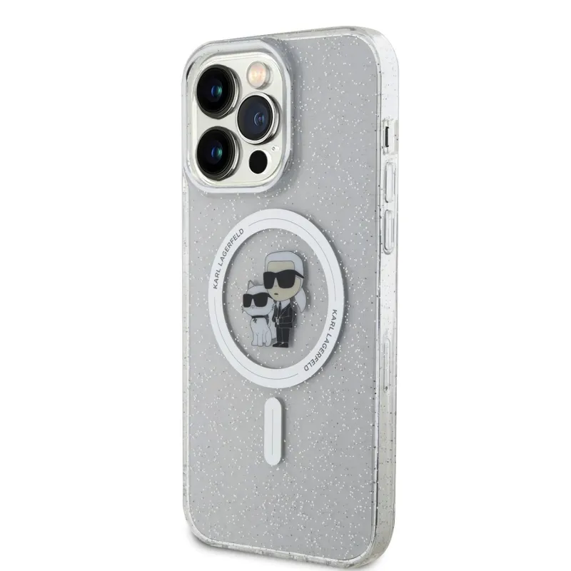Karl Lagerfeld IML Glitter Karl és Choupette MagSafe hátlap iPhone 15 Pro Max készülékhez - átlátszó