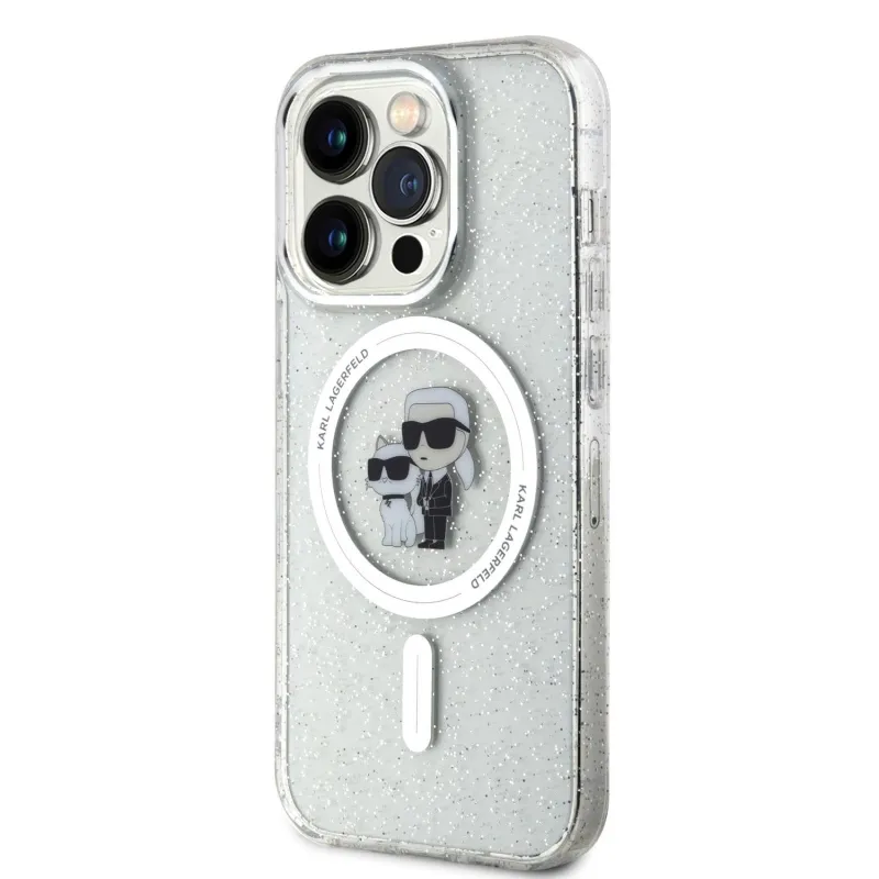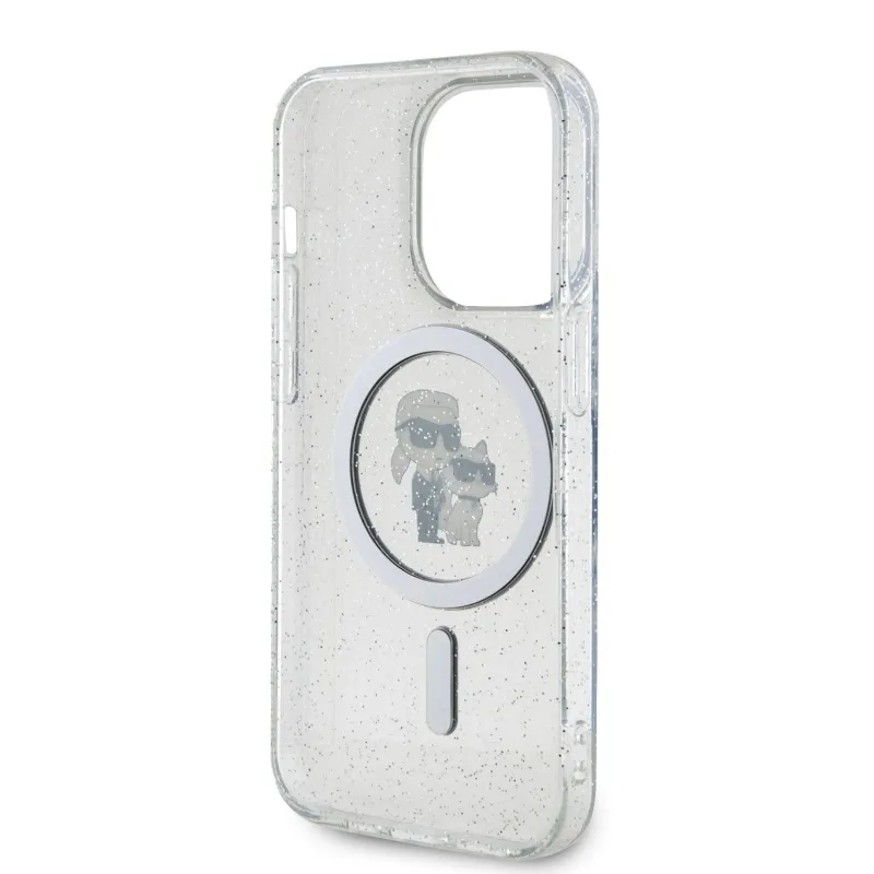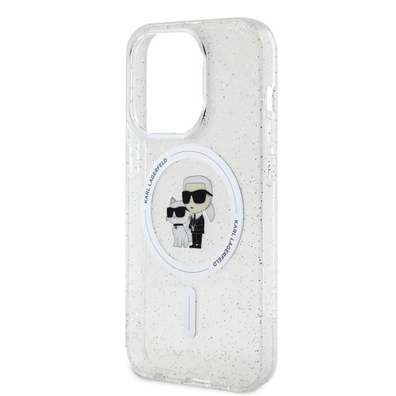 Karl Lagerfeld IML Glitter Karl és Choupette MagSafe MagSafe hátlap iPhone 15 Pro-hoz Átlátszó