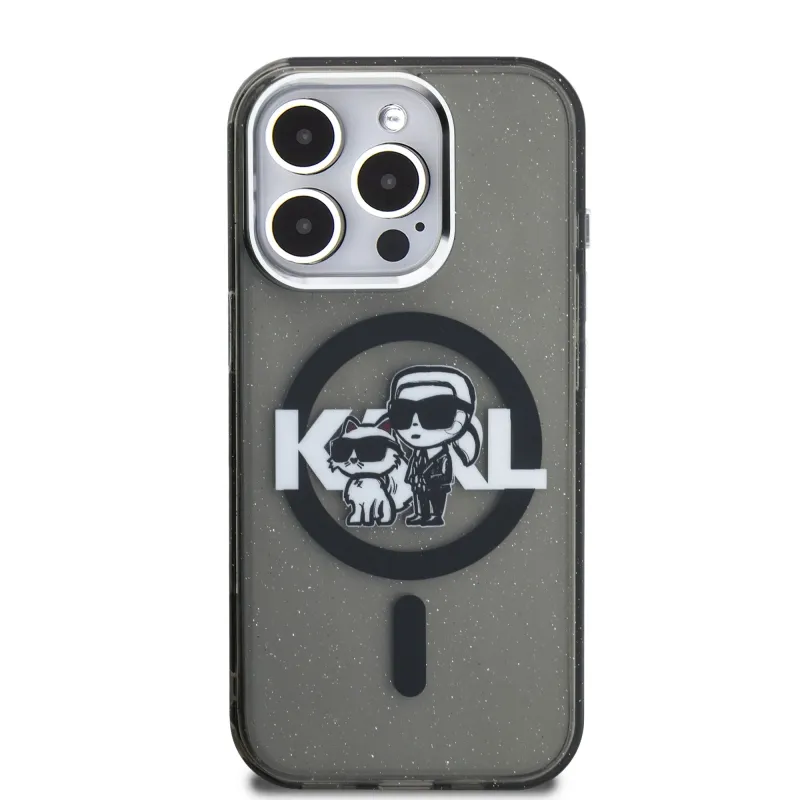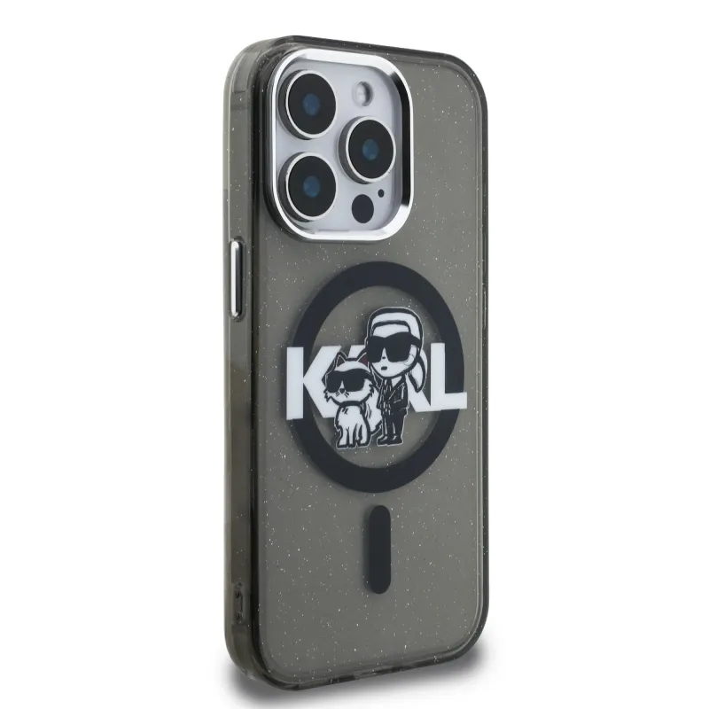 Karl Lagerfeld IML Glitter Karl és Choupette Sketch MagSafe hátlap iPhone 15 Pro Max-hoz Fekete