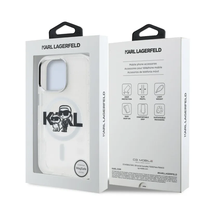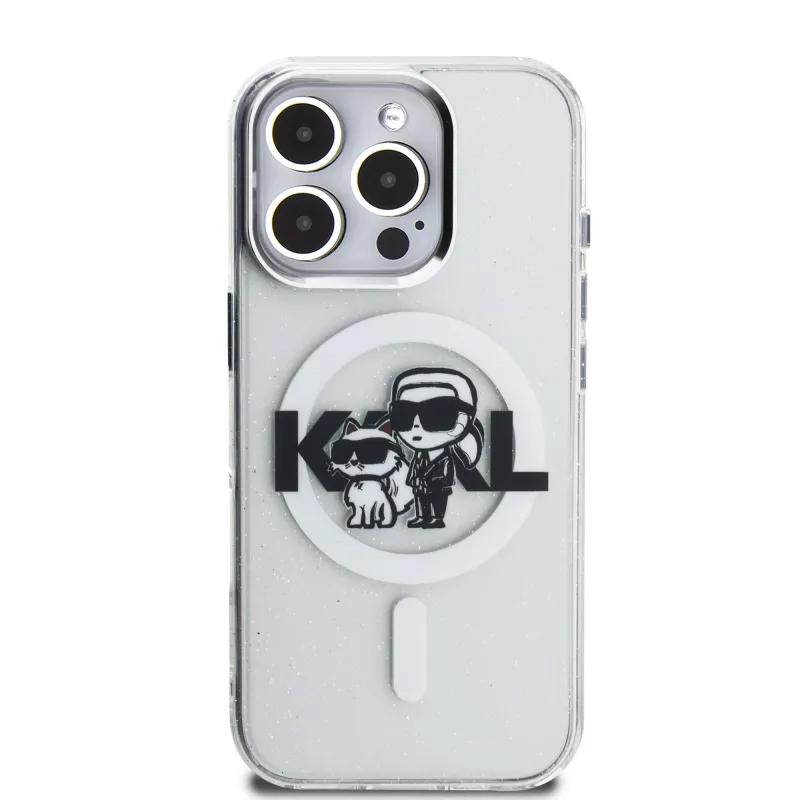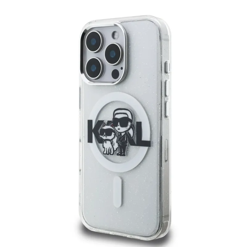 Karl Lagerfeld IML Glitter Karl és Choupette Sketch MagSafe hátlap iPhone 16 Pro Max átlátszóhoz
