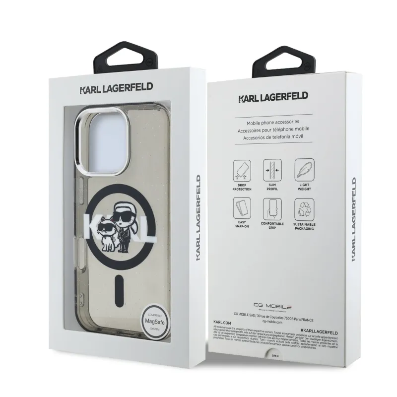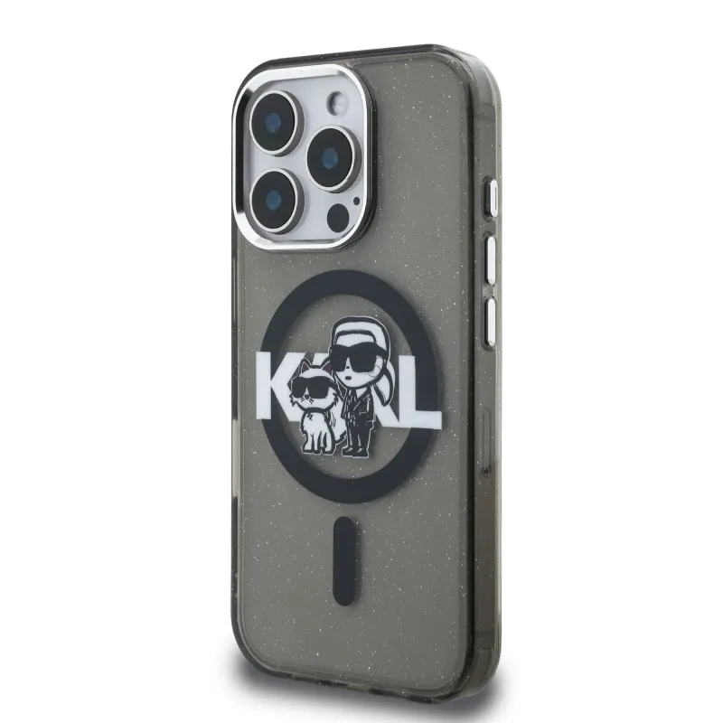 Karl Lagerfeld IML Glitter Karl és Choupette Sketch MagSafe hátlap iPhone 16 Pro Max-hoz Fekete