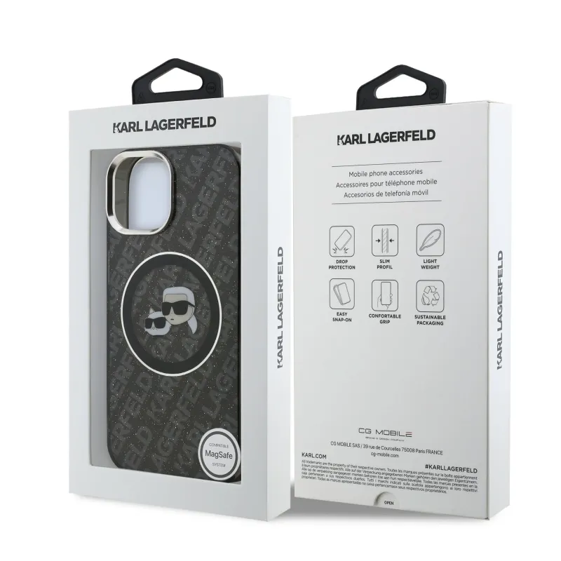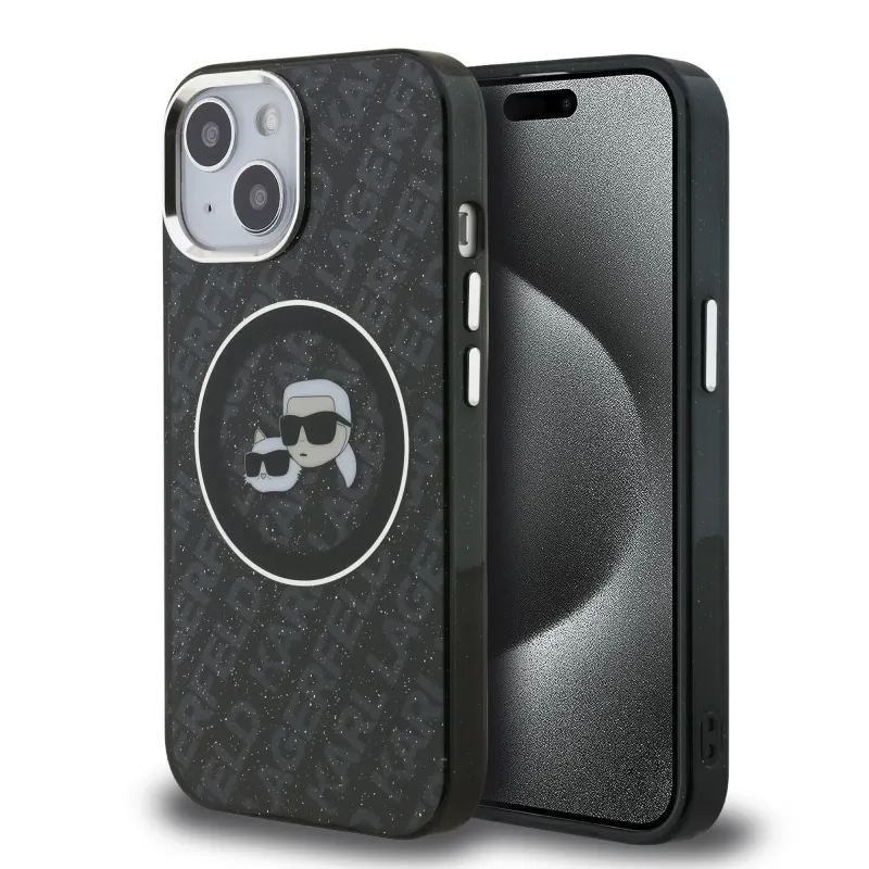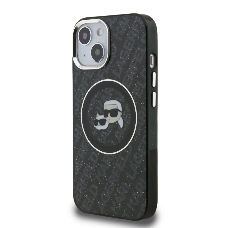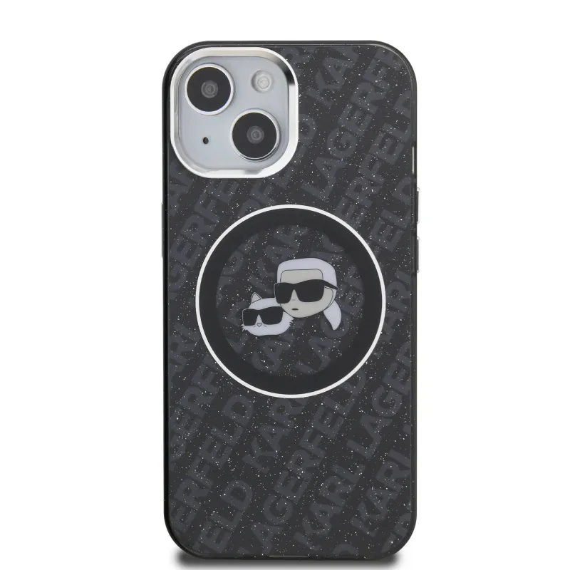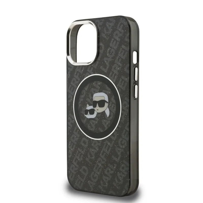Karl Lagerfeld IML K&CH Heads Ismételt logó MagSafe hátlapi borító iPhone 15-hez Fekete