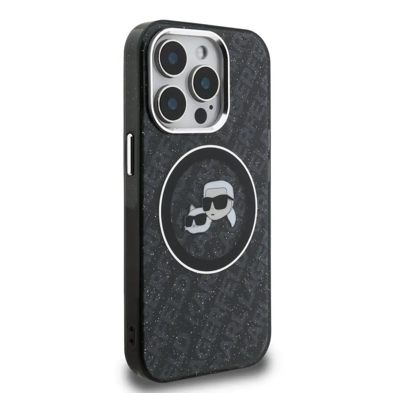 Karl Lagerfeld IML K&CH Heads Ismételt logó MagSafe hátlapi borító iPhone 15 Pro-hoz Fekete