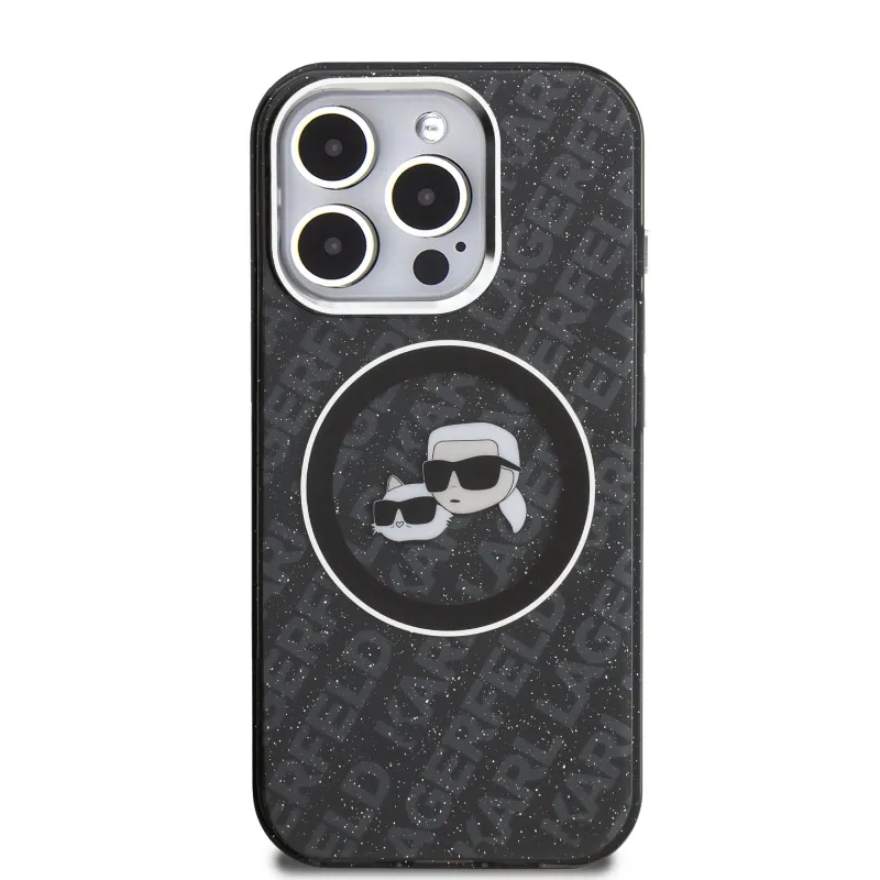 Karl Lagerfeld IML K&CH Heads Ismételt logó MagSafe hátlapi borító iPhone 15 Pro Max készülékhez Fekete