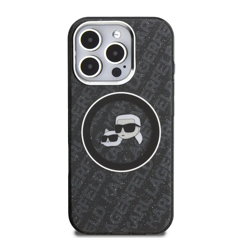 Karl Lagerfeld IML K&CH Heads Ismételt logó MagSafe hátlapi borító iPhone 16 Pro-hoz Fekete