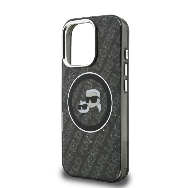 Karl Lagerfeld IML K&CH Heads Ismételt logó MagSafe hátlapi borító iPhone 16 Pro Max-hoz Fekete