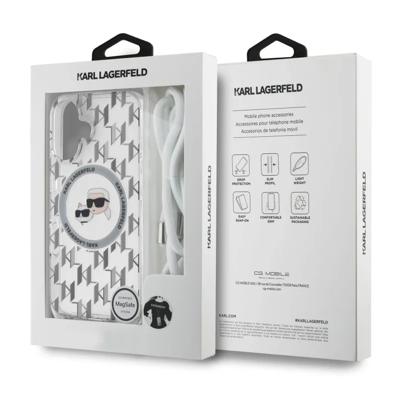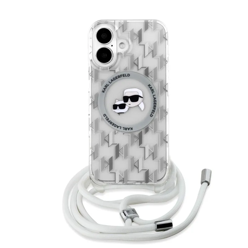 Karl Lagerfeld IML Monogram Kereszttest K&CH Heads MagSafe hátlap iPhone 16-hoz Átlátszó