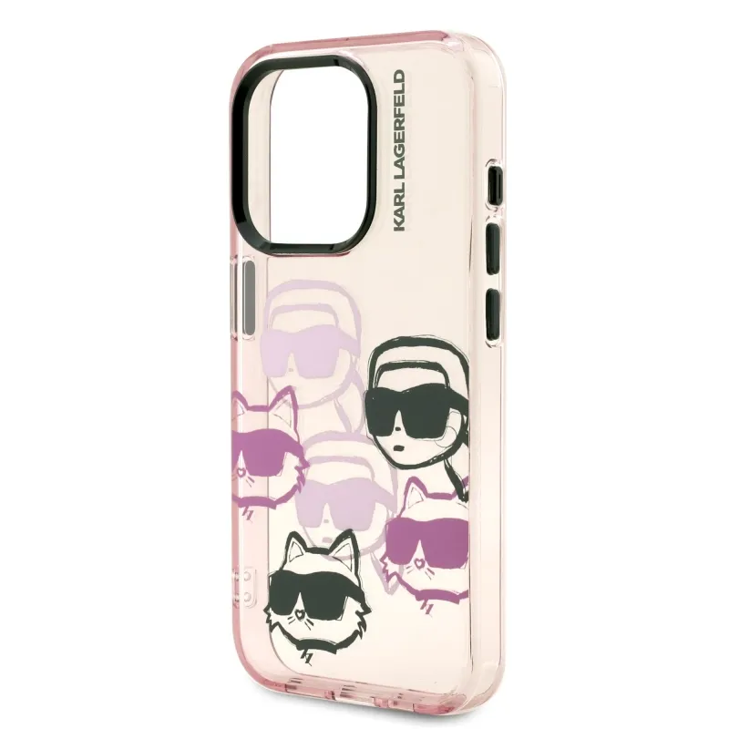 Karl Lagerfeld IML Multi K&CH Heads hátlapi borító iPhone 15 Pro rózsaszínű készülékhez