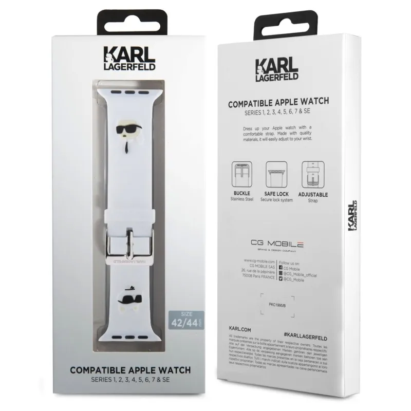 Karl Lagerfeld Karl és Choupette Head NFT szíj Apple Watch 42/44/45/45/49 órához Fehér