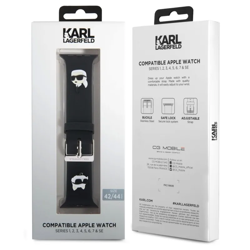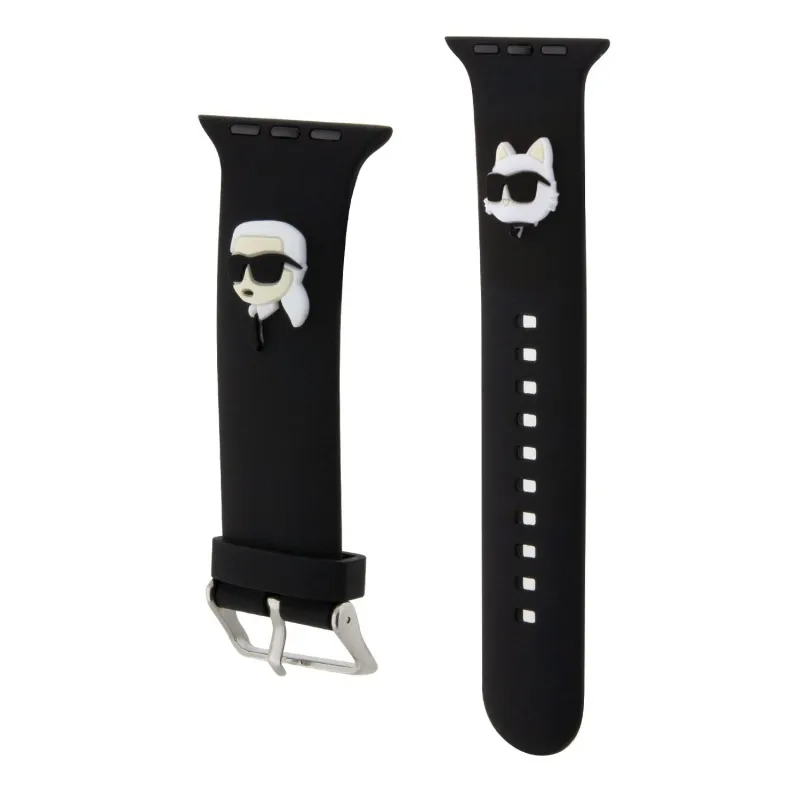 Karl Lagerfeld Karl és Choupette Head NFT szíj az Apple Watch 42/44/45/45/49 órához Fekete