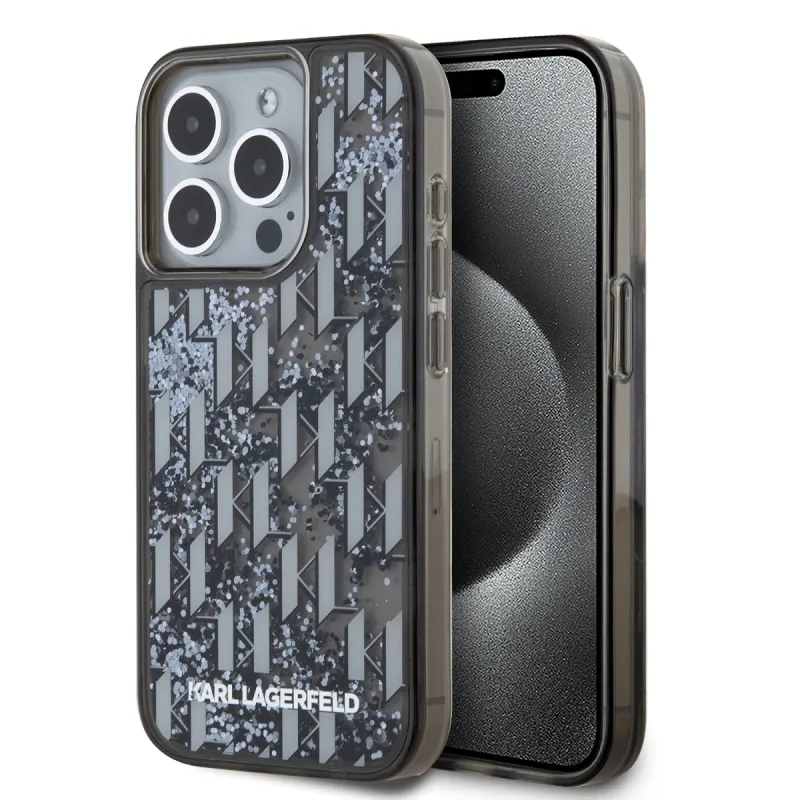 Karl Lagerfeld Liquid Glitter Monogram Monogram Gradient Back Cover az iPhone 15 Pro Max készülékhez Fekete