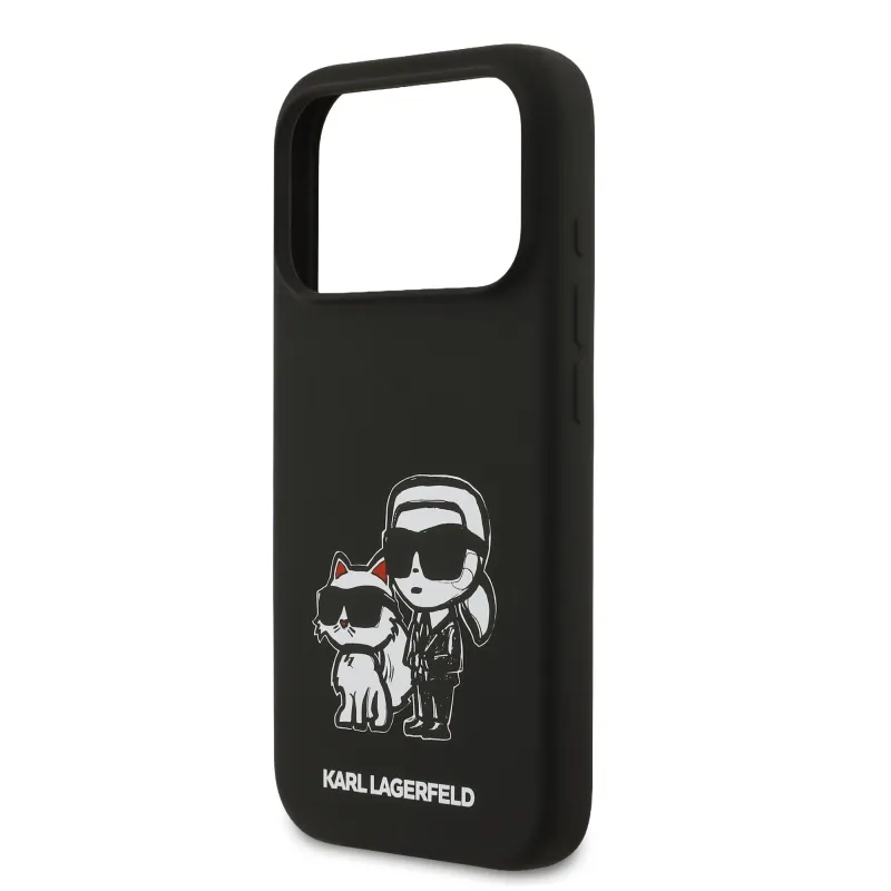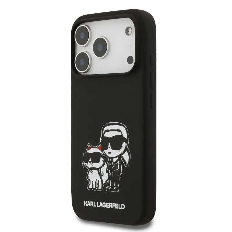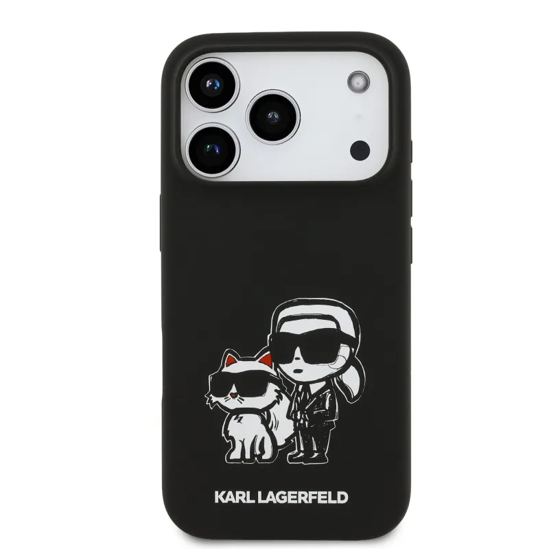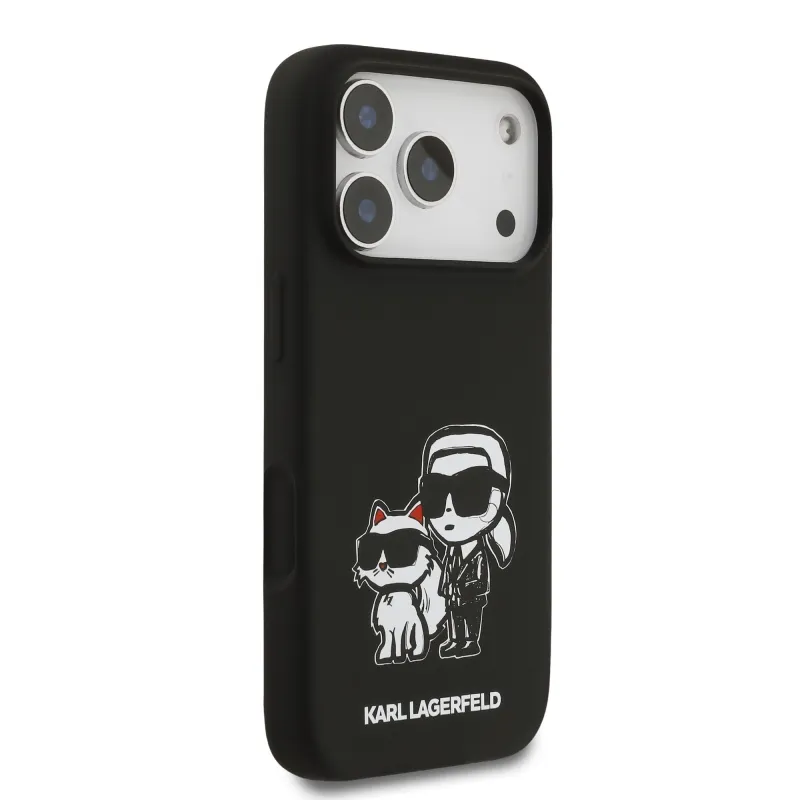 Karl Lagerfeld Liquid Silicone K&CH Sketch MagSafe hátlapi borító iPhone 17 Pro-hoz Fekete