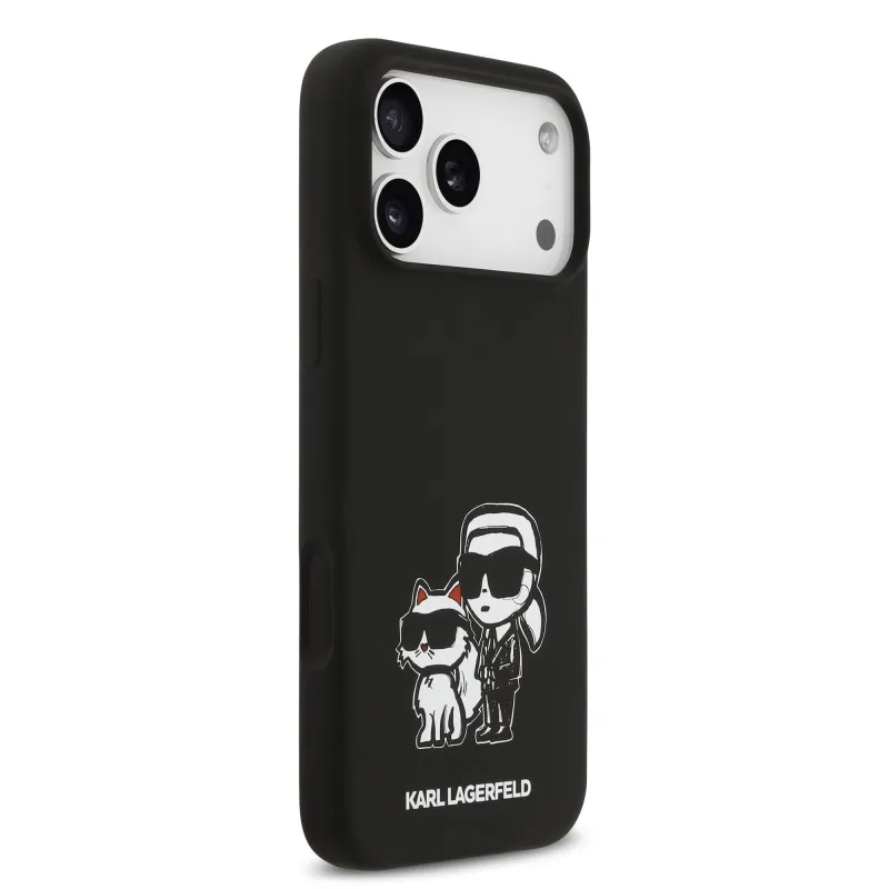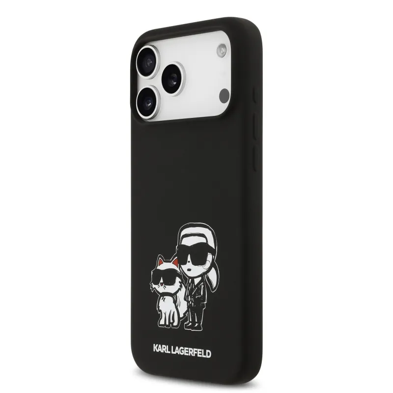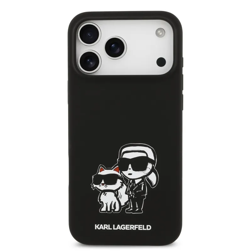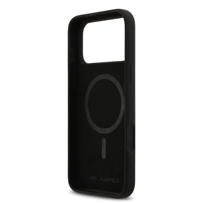 Karl Lagerfeld Liquid Silicone K&CH Sketch MagSafe hátlapi borító iPhone 17 Pro Max-hoz Fekete
