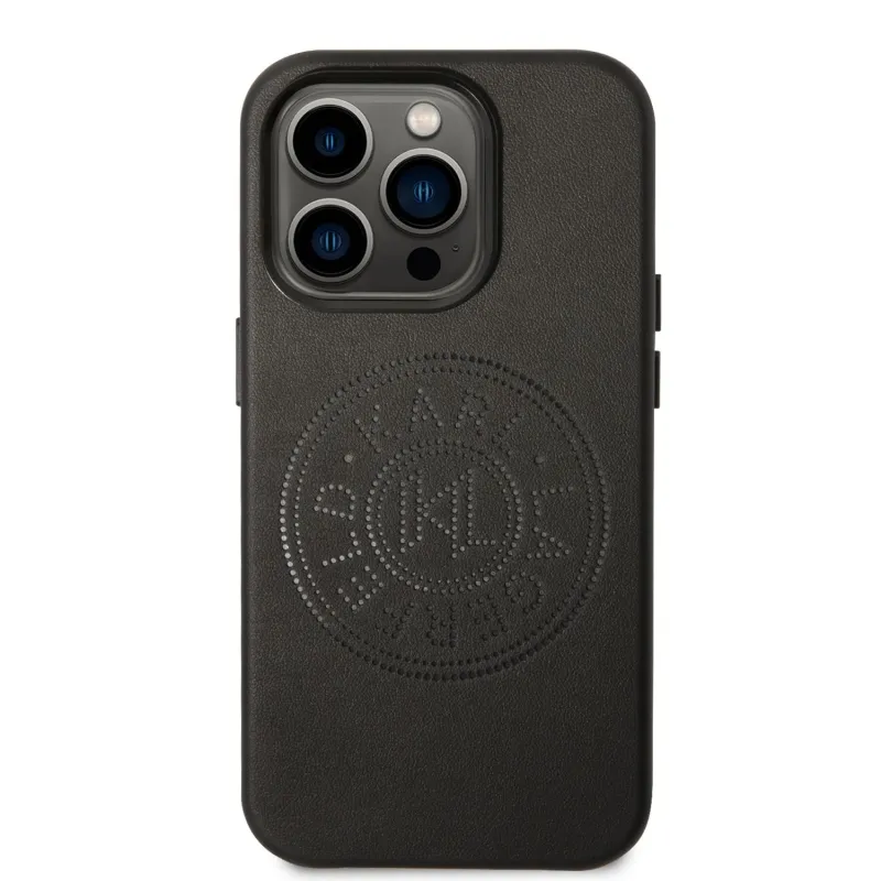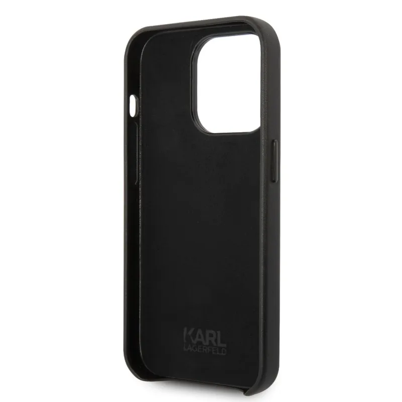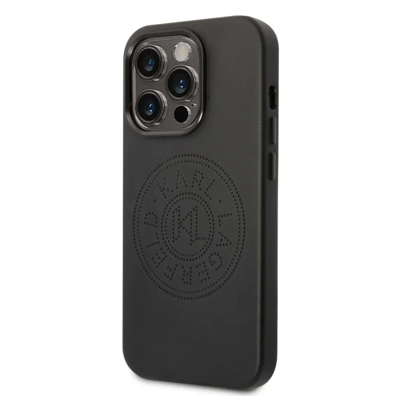Karl Lagerfeld PU bőr perforált logós hátlap iPhone 14 Pro Max-hoz Fekete