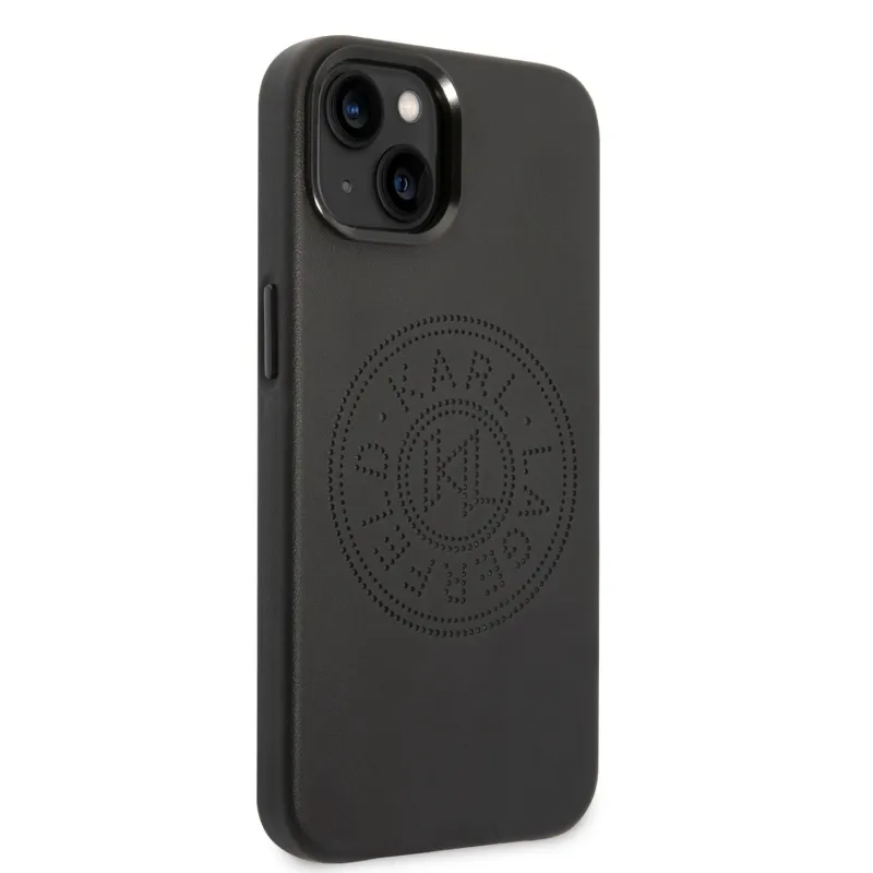 Karl Lagerfeld PU bőr perforált logóval ellátott hátlap iPhone 14 Plus fekete