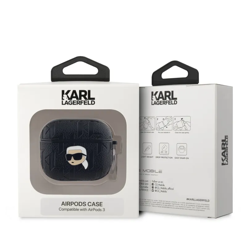 Karl Lagerfeld PU dombornyomott Karl fej tok az AirPods 3 készülékhez Fekete