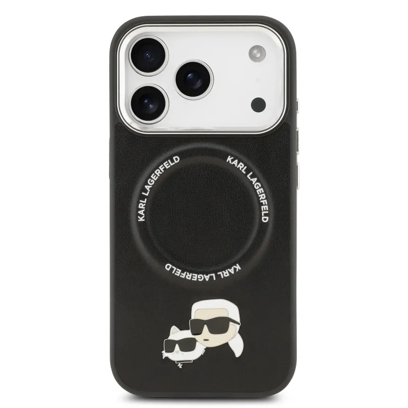 Karl Lagerfeld PU Karl és Choupette fejek tűk MagSafe hátlap iPhone 17 Pro fekete színű borítóhoz