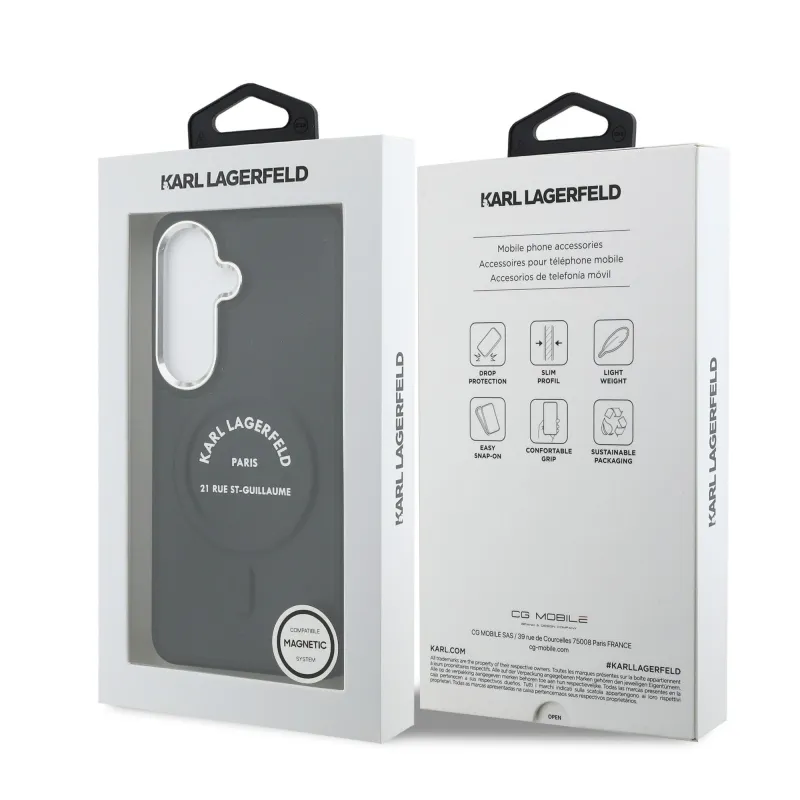 Karl Lagerfeld PU RSG logós mágneses hátlap Samsung Galaxy S26-hoz Fekete
