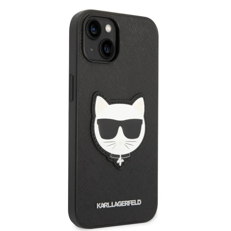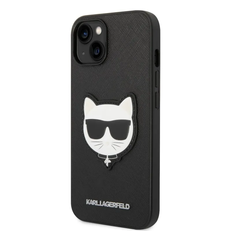 Karl Lagerfeld PU Saffiano Choupette Head hátlap iPhone 14 Plus készülékhez fekete
