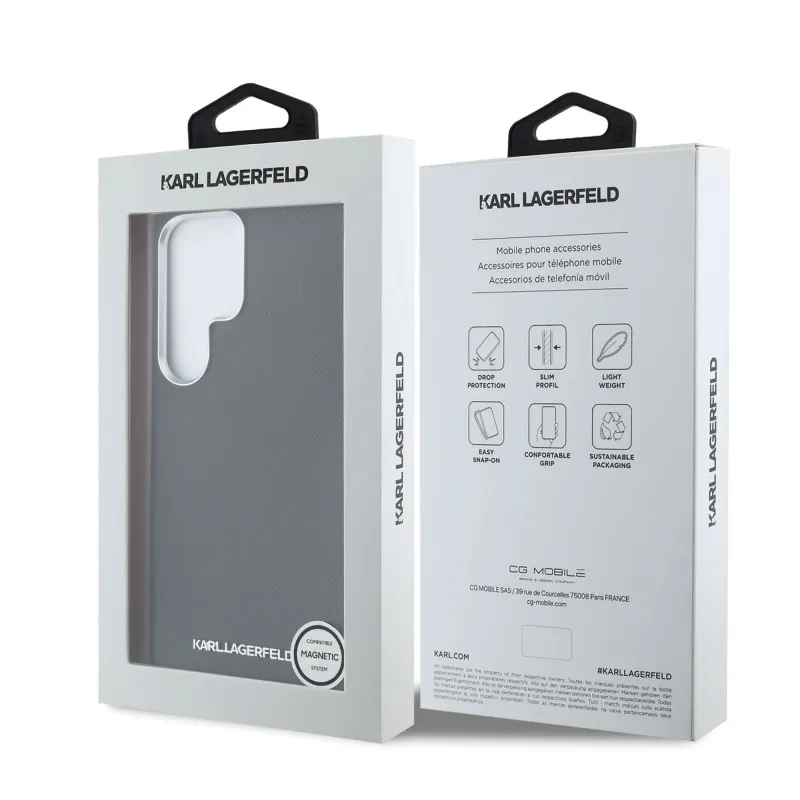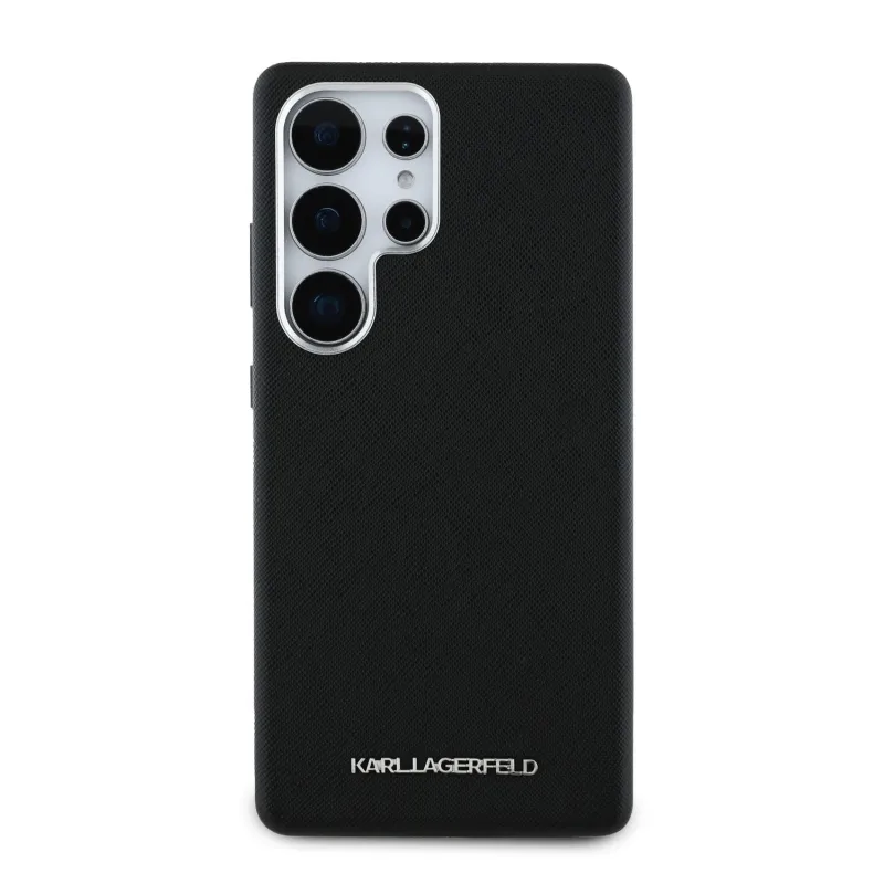 Karl Lagerfeld PU Saffiano fém logó és keret hátlap Samsung Galaxy S25 Ultra fekete