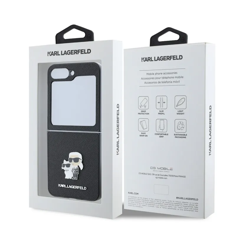 Karl Lagerfeld PU Saffiano Karl és Choupette hátlap a Samsung Galaxy Z Flip 6-hoz Fekete fekete