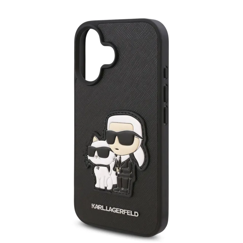 Karl Lagerfeld PU Saffiano Karl és Choupette hátlap iPhone 16 Plus készülékhez Fekete