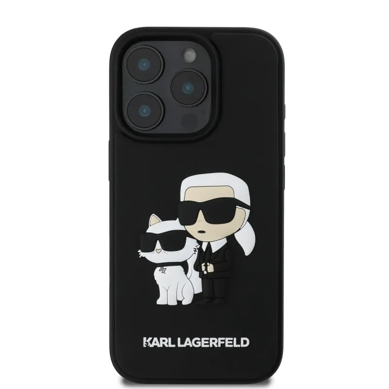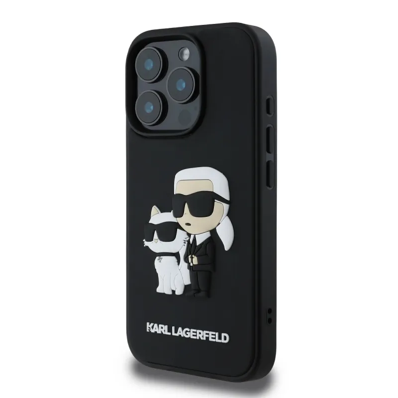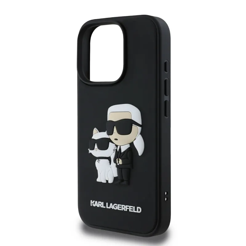Karl Lagerfeld PU Saffiano Karl és Choupette hátlap iPhone 16 Pro Max-hoz Fekete